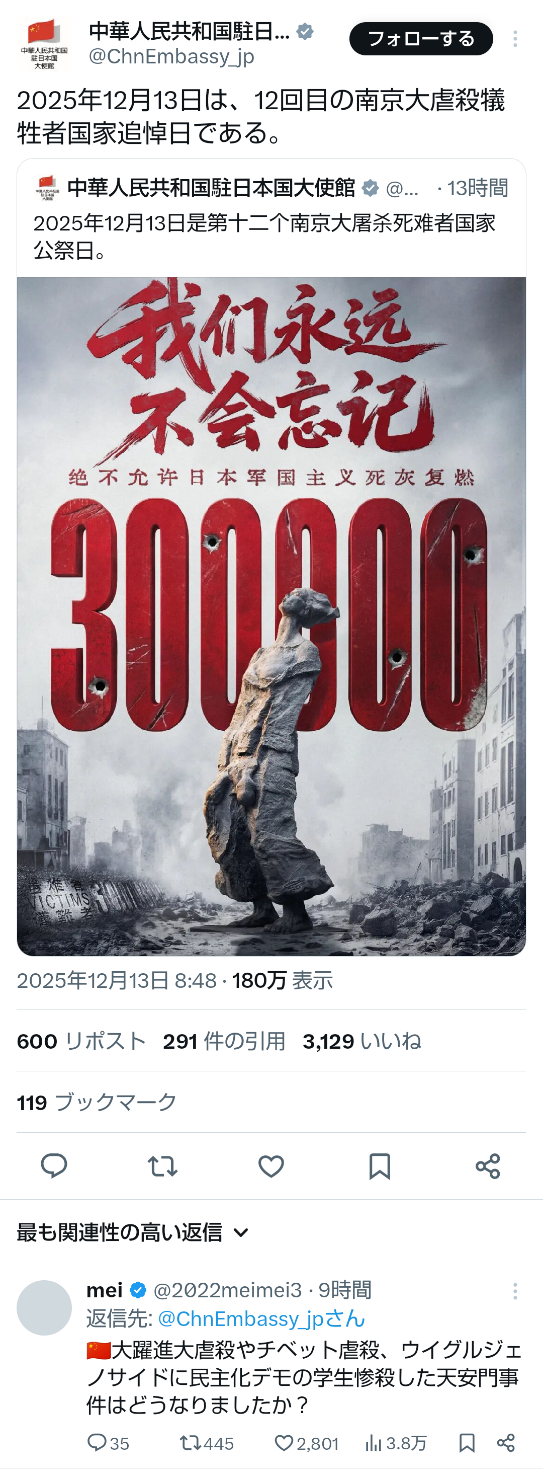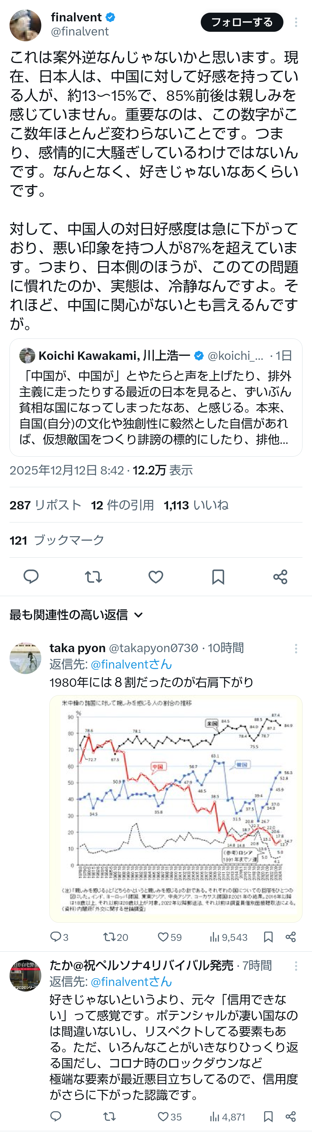| … | 58無題Name名無し 25/12/11(木)19:26:59No.764720そうだねx5>なお日本は中国友好国 |