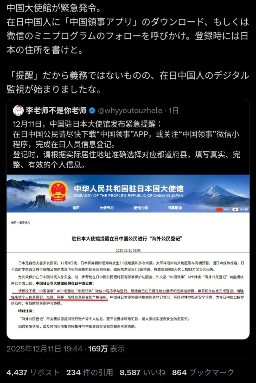 | … | 32無題Name名無し 25/12/11(木)16:15:25No.764694そうだねx5 1765437325379.jpg-(73079 B) 何故かやたら中国人優遇の制度がある日本 |