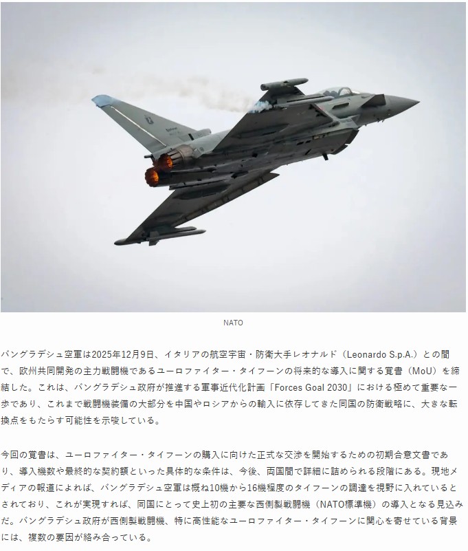 | … | 301無題Name名無し 25/12/13(土)21:31:29No.765075+ 1765629089685.jpg-(116137 B) ユーロファイター購入へ!バングラデシュ空軍の装備更新・F-7老朽化 |
