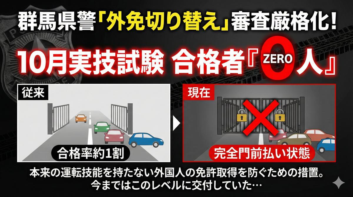 群馬県警は、審査が厳格化した10月に技能を問う実技試験の通過者はいなかったと明らかにした。