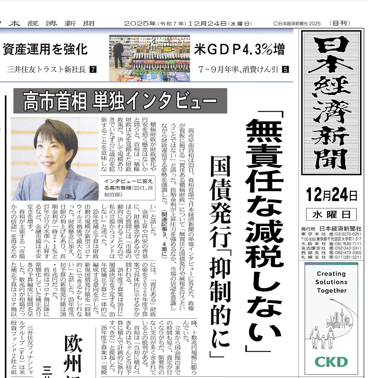 高市早苗首相は23日、首相官邸で日本経済新聞の単独インタビューに答えた。政権が看板に掲げる「責任ある積極財政」について「無責任な国債発行や減税を行うということではない」と語った。長期金利が上昇圧力を強めるなか、市場の信認を意識しながら財政運営する姿勢を強調した。