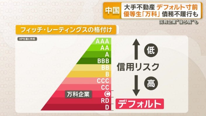 悪化している中国の不動産大手、万科企業の格付けを一部債務の