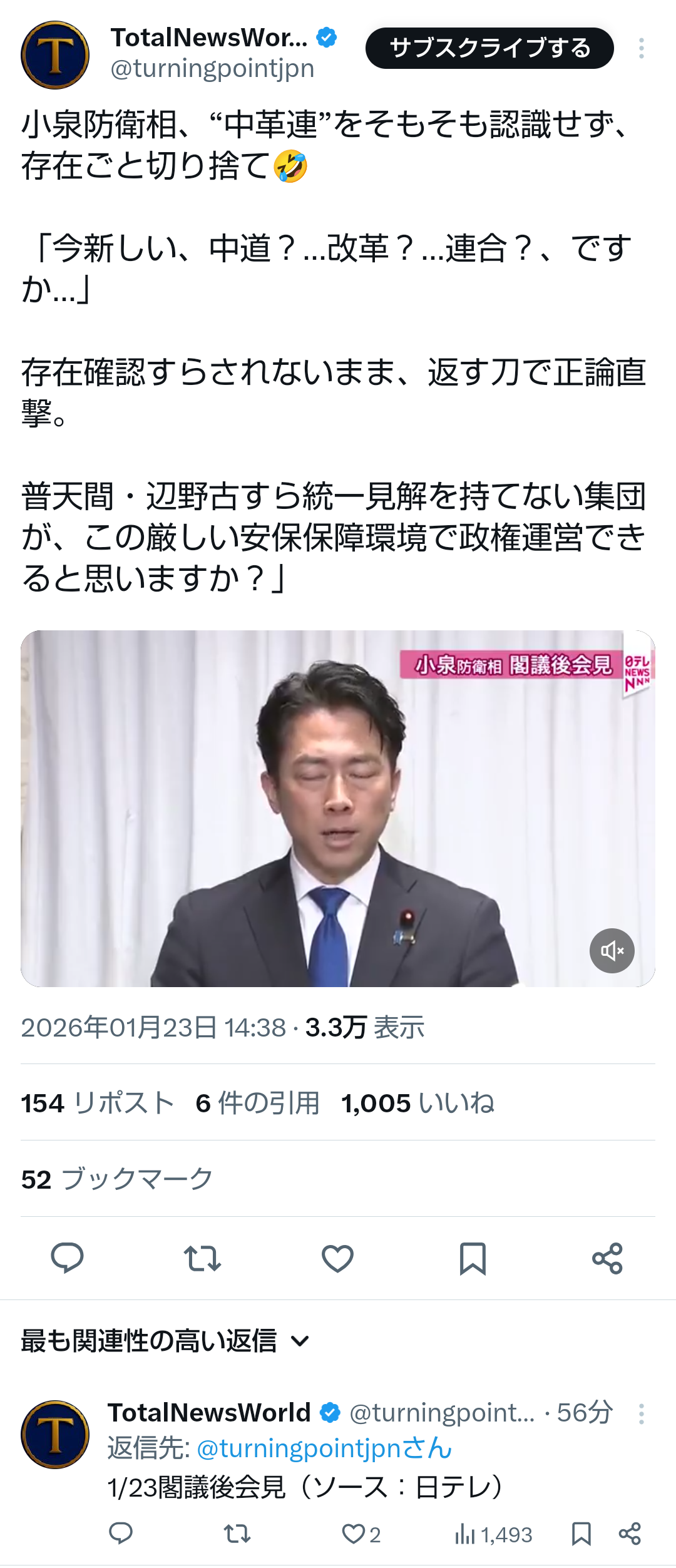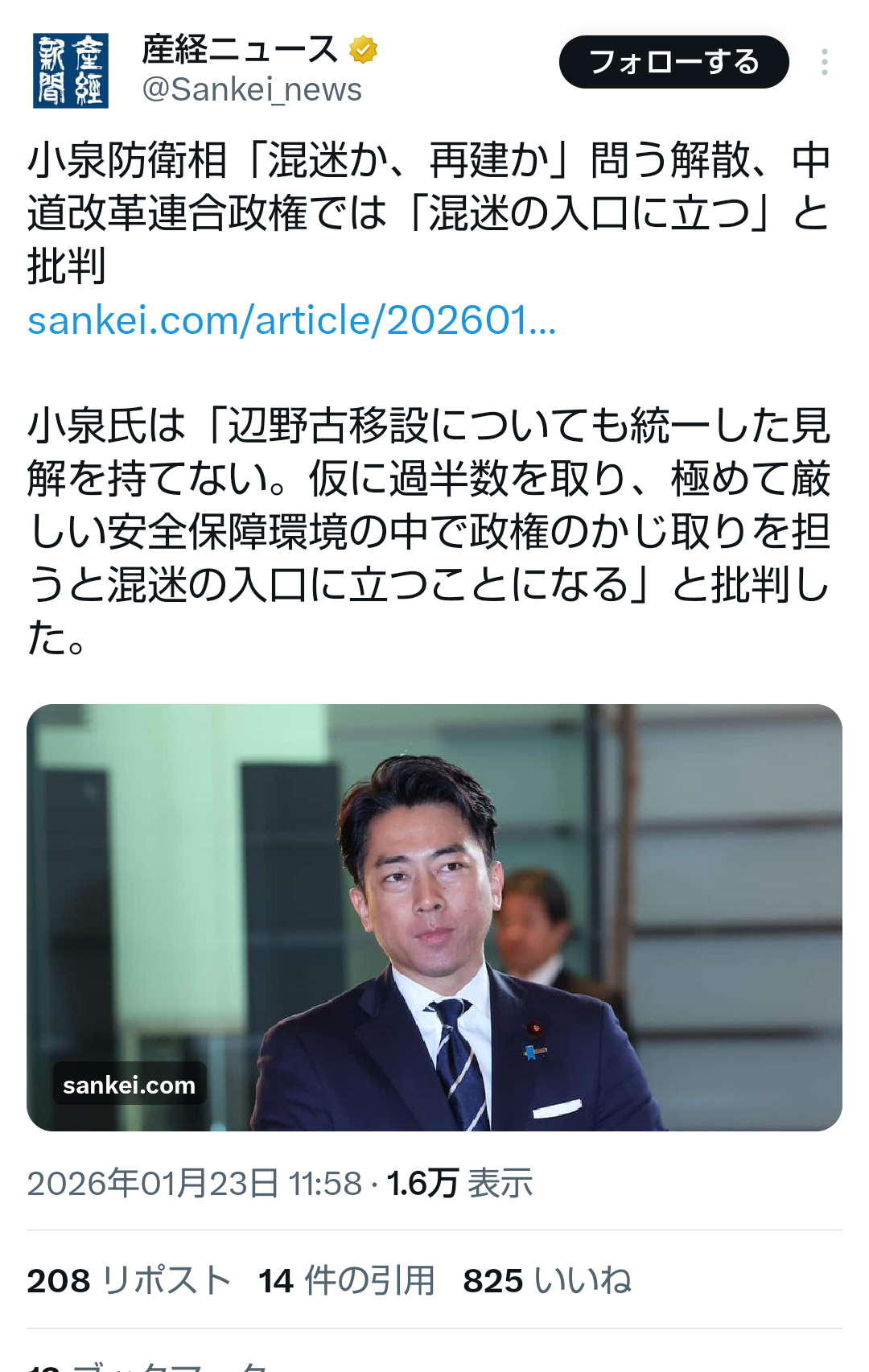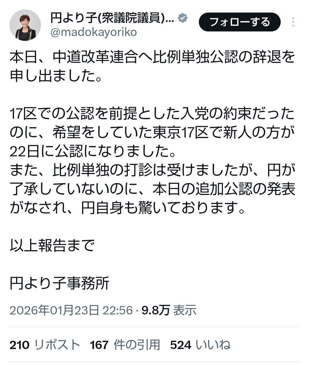 | … | 60無題Name名無し 26/01/22(木)12:24:11No.773258+総務省の報道資料からすると立憲野田の方が先に提出してるみたいだね |