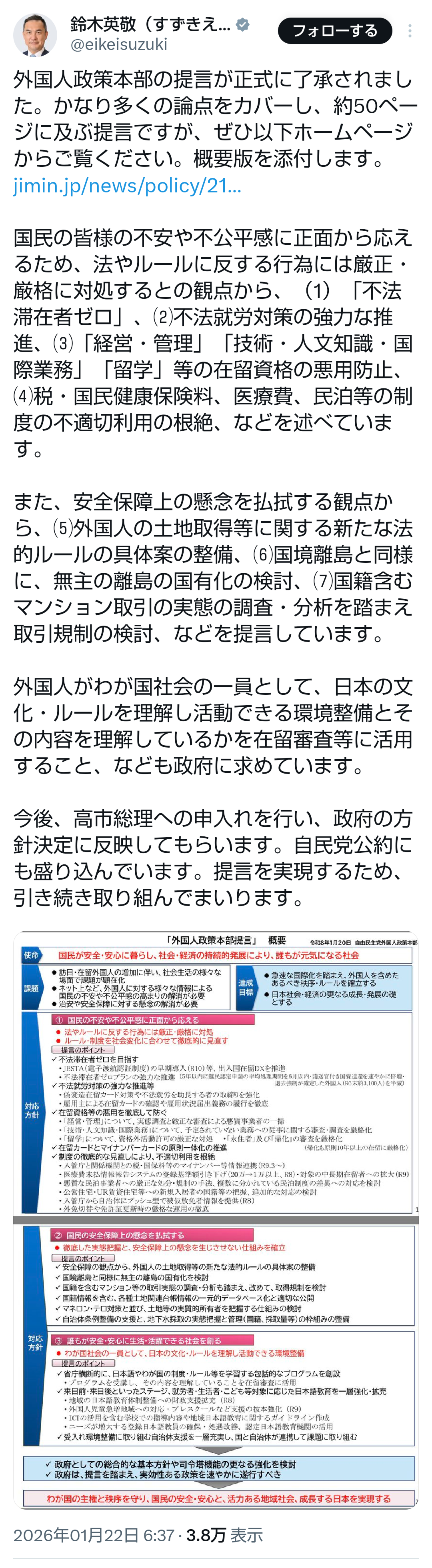 | … | 72無題Name名無し 26/01/22(木)12:34:37No.773270+昔の橋下も言ってたね在日朝鮮人の特区作って参政権は有りだろうとかテレビで |
