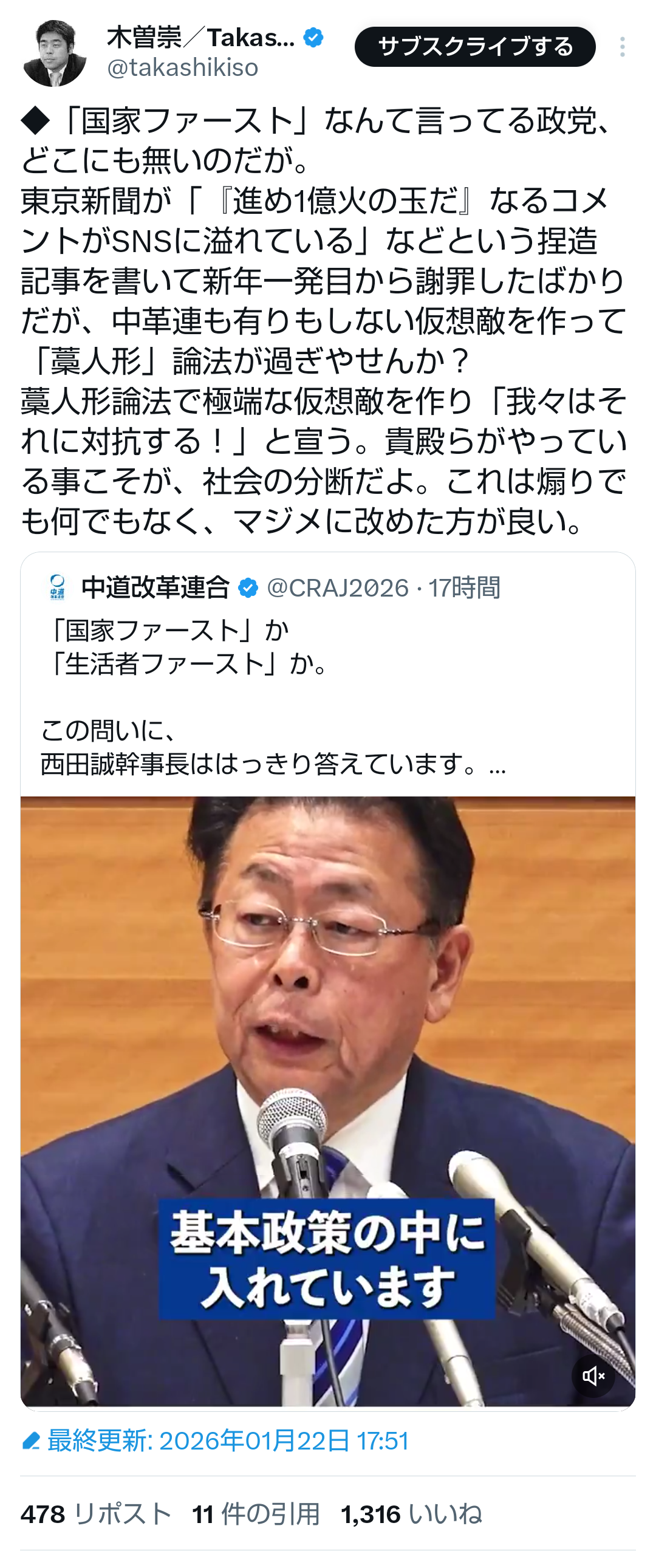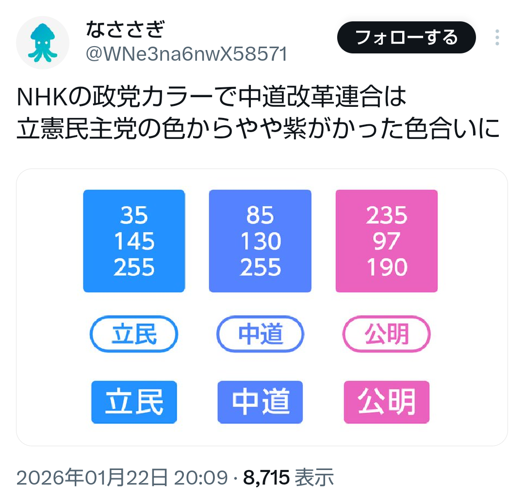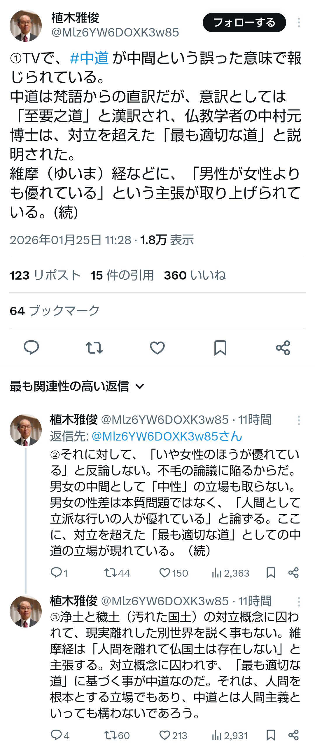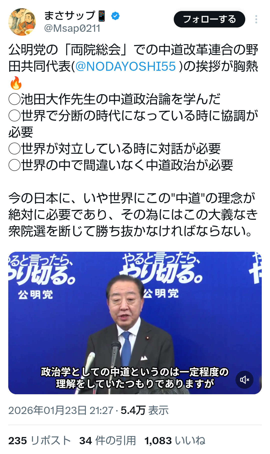 | … | 980無題Name名無し 26/01/25(日)23:03:45No.774291+ 1769349825663.png-(673984 B) >TVで、#中道 が中間という誤った意味で報じられている。 |