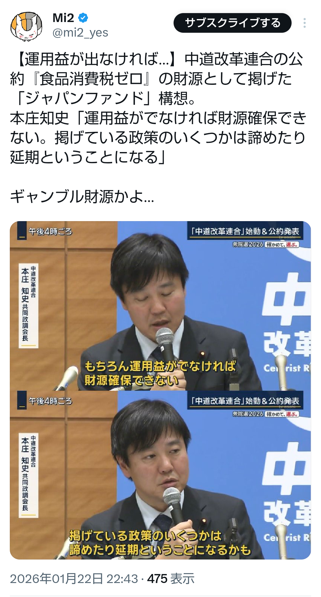 | … | 935無題Name名無し 26/01/25(日)18:54:16No.774235そうだねx1その有能なセンセイ方も議席のためなら公明の言いなりでいいですって証文書いちゃったもんな |