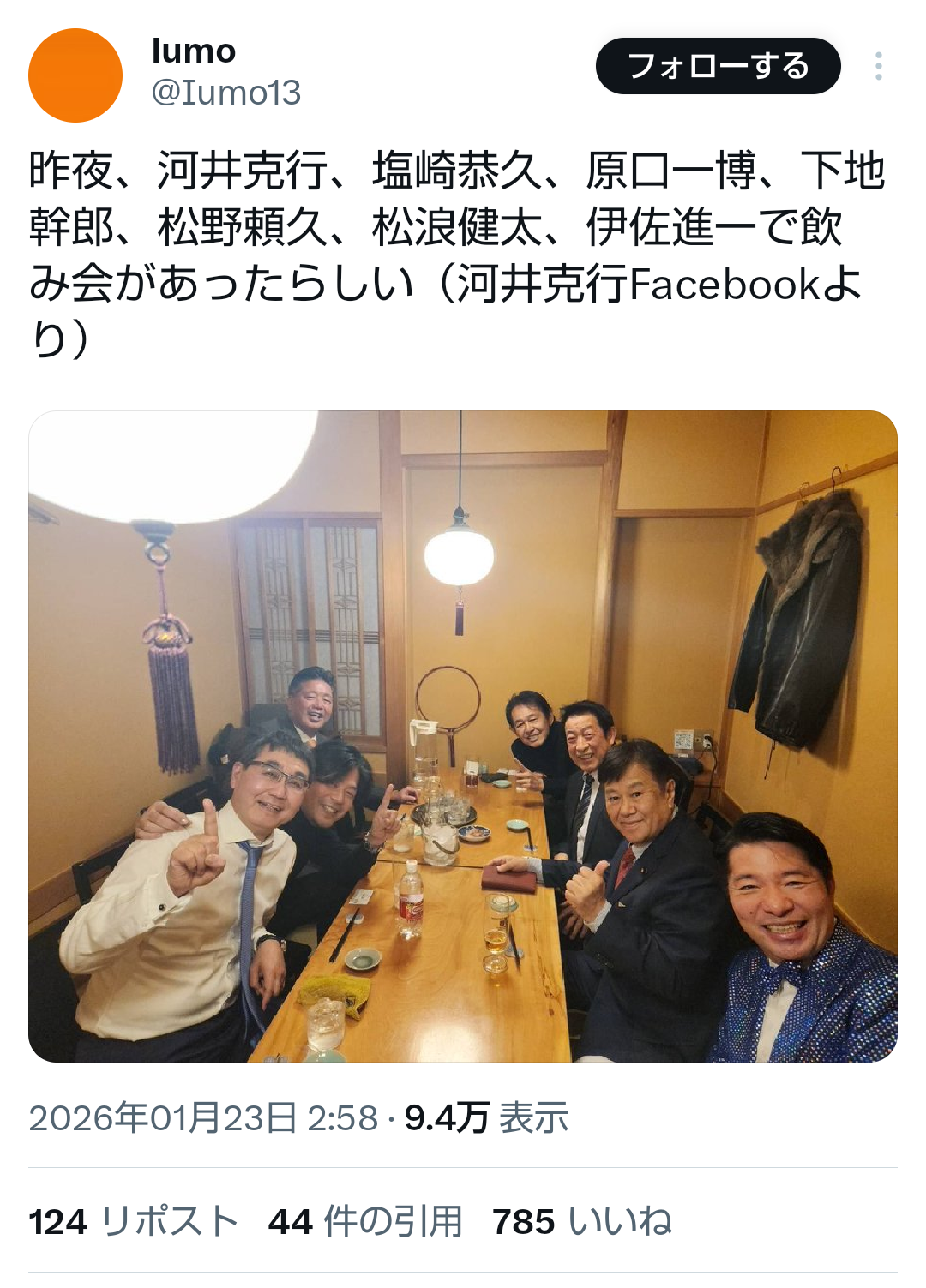 | … | 29無題Name名無し 26/01/22(木)11:36:03No.773227+中革=名称変えた公明であって立憲成分0になるから |