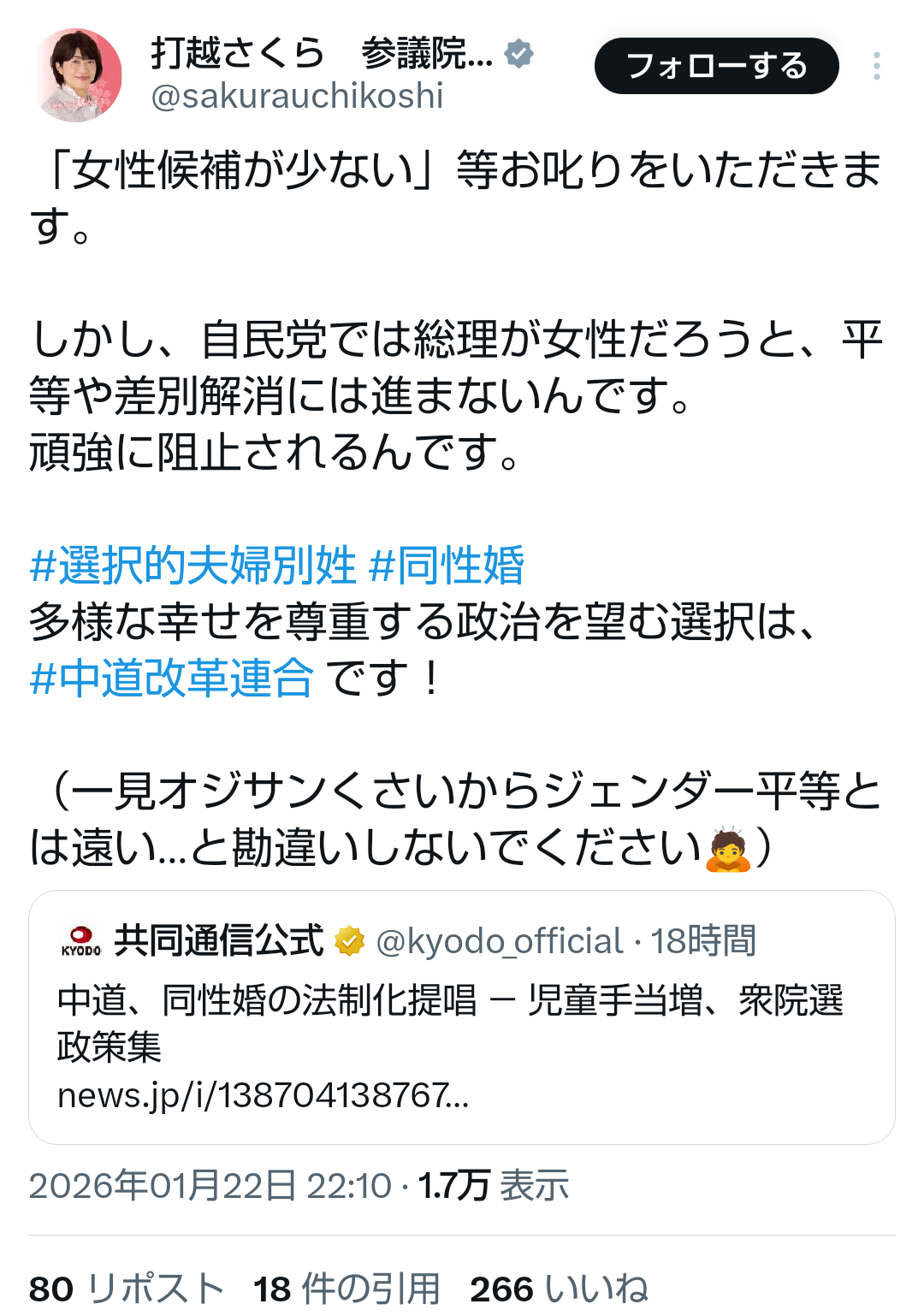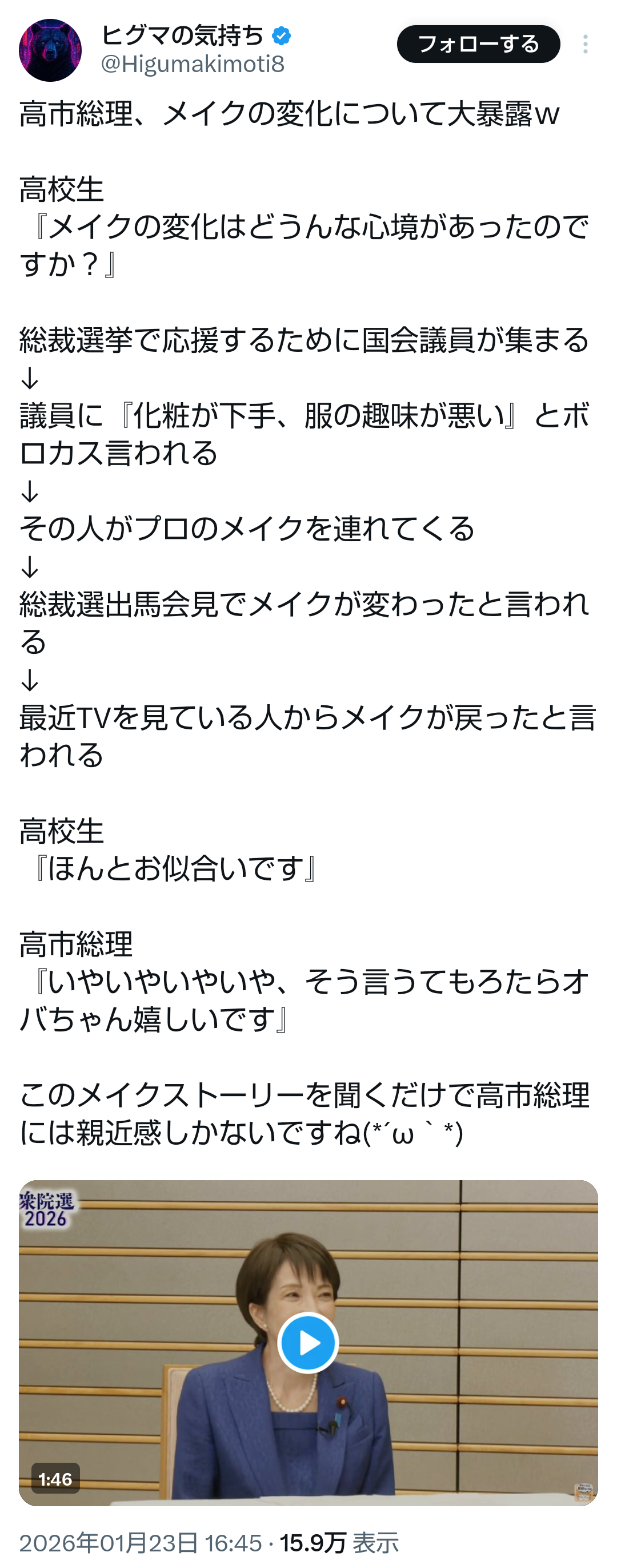 | … | 62無題Name名無し 26/01/22(木)12:25:46No.773260+>選挙で各候補の応援立ったり党代表して政策語れる人? |