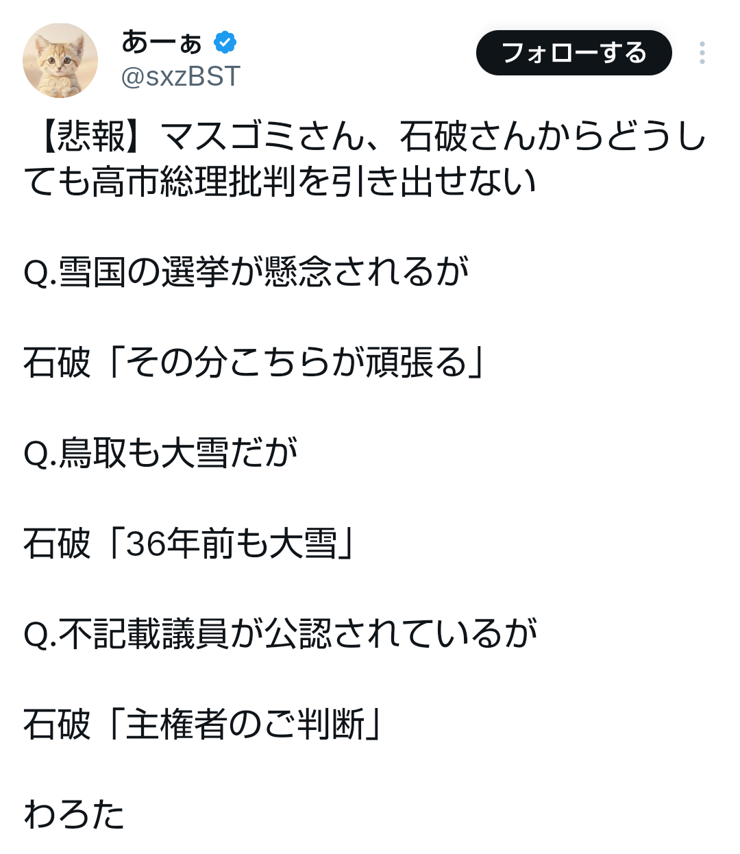 | … | 965無題Name名無し 26/01/25(日)20:01:50No.774271+石破の言はある意味では真剣に受け止める必要がある部分があるというか |