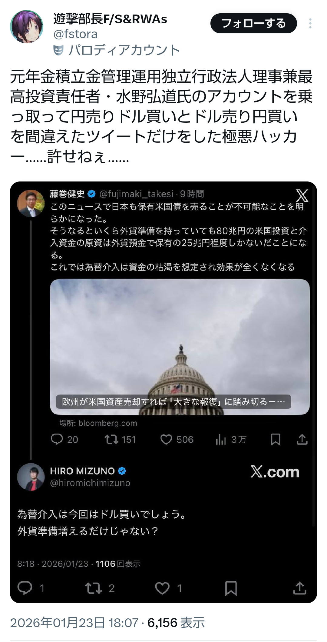 | … | 15無題Name名無し 26/01/22(木)11:00:58No.773213そうだねx5>日本でも高市クーデター解散とか言ってるヤツラ |
