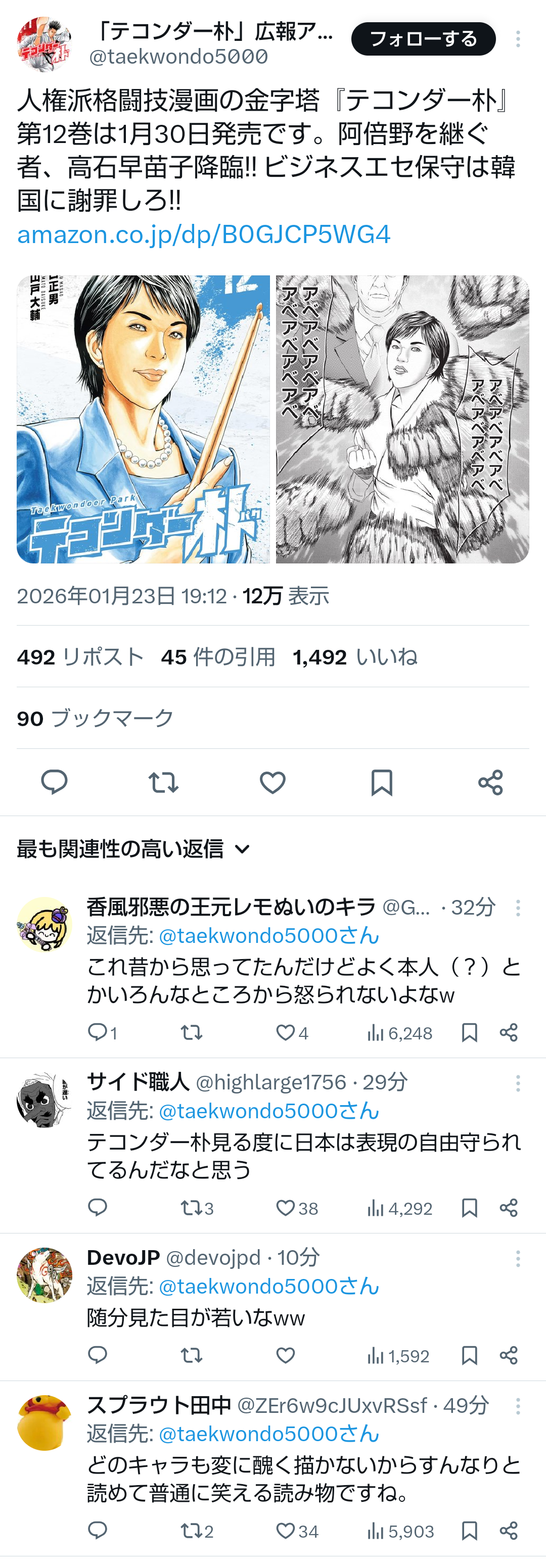 | … | 36無題Name名無し 26/01/22(木)11:42:09No.773234そうだねx16韓国ウォッチしてるスレで何を… |