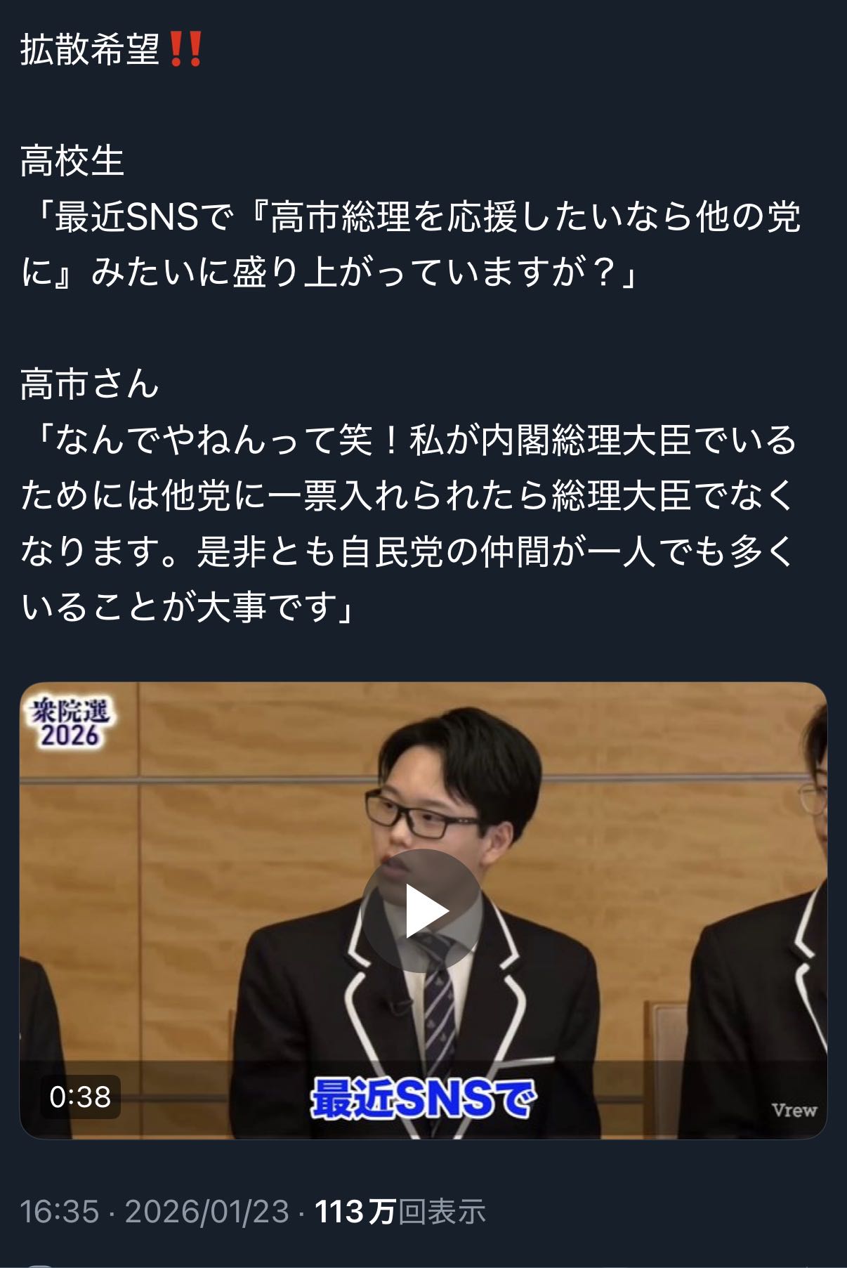 | … | 928無題Name名無し 26/01/25(日)18:31:07No.774228+自民党の票はある程度政策や手腕を見てる人がいるという意味で |