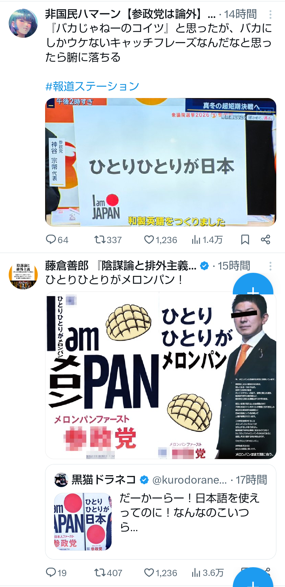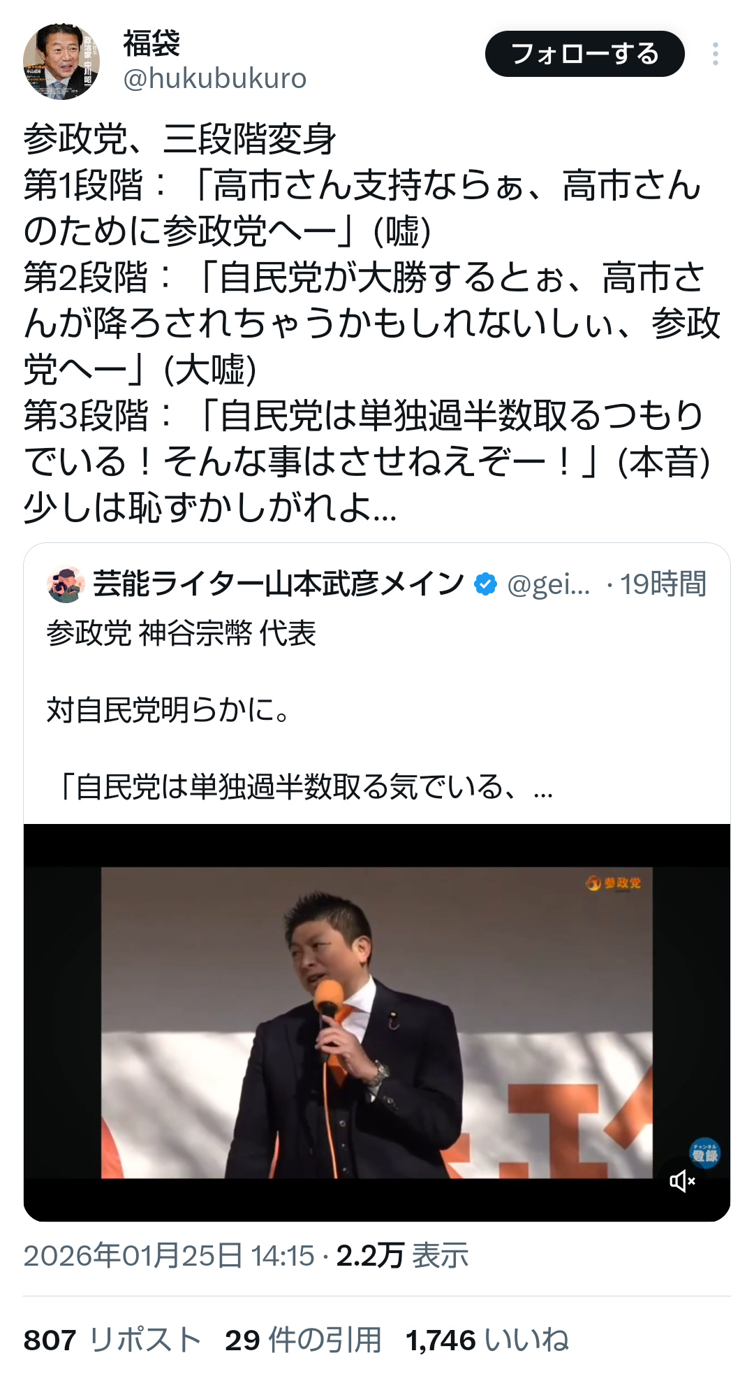 | … | 956無題Name名無し 26/01/25(日)19:19:53No.774260+>>>参政 百姓党員 |