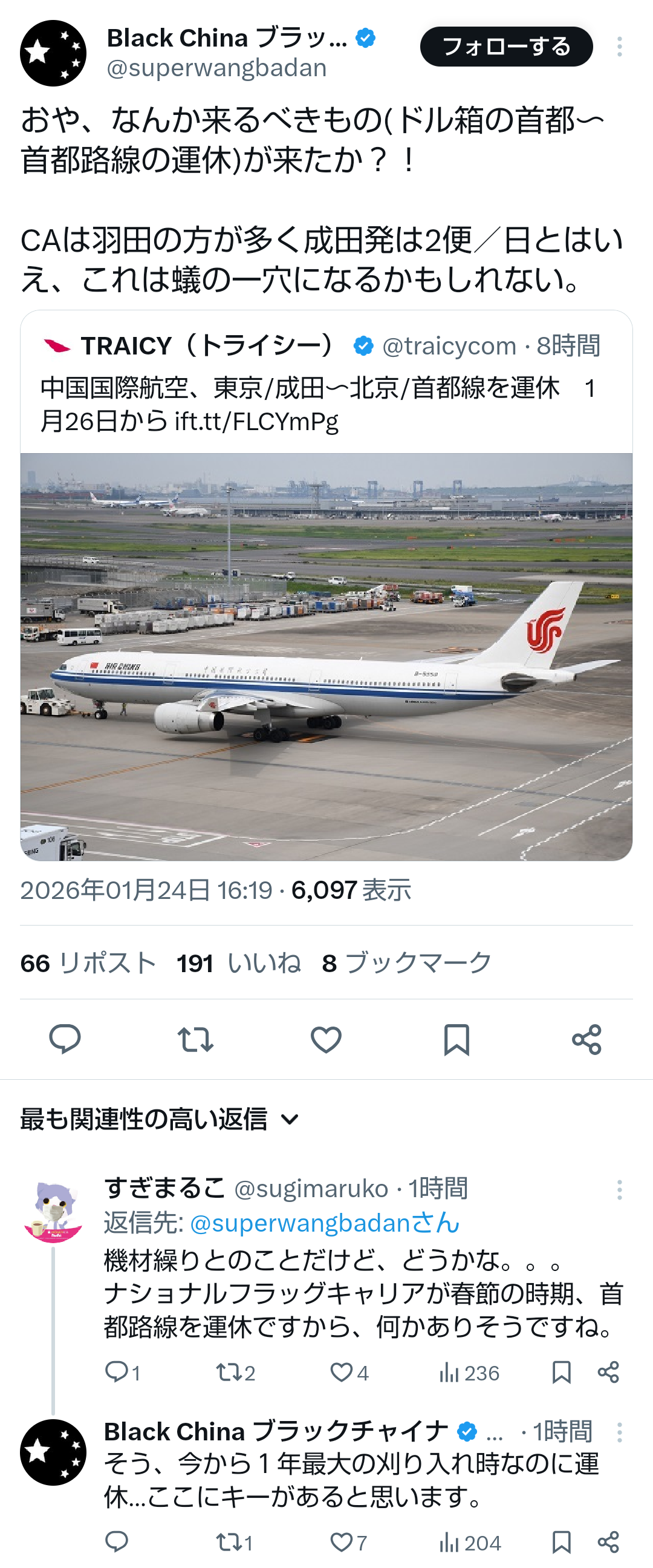 | … | 941無題Name名無し 26/01/25(日)19:02:10No.774245+>個人的には「中国への渡航危険度」言及してくれたら、お?とは思うんだがな |