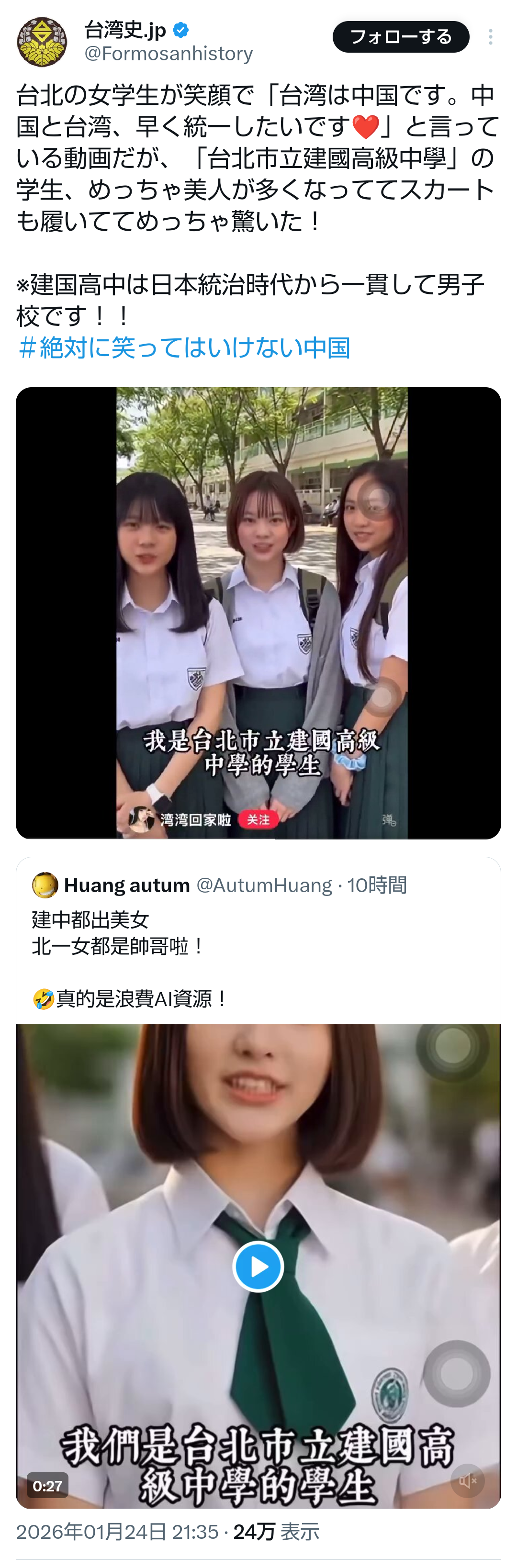 | … | 12無題Name名無し 26/01/22(木)10:28:10No.773210+中国共産党員目線で言えば |