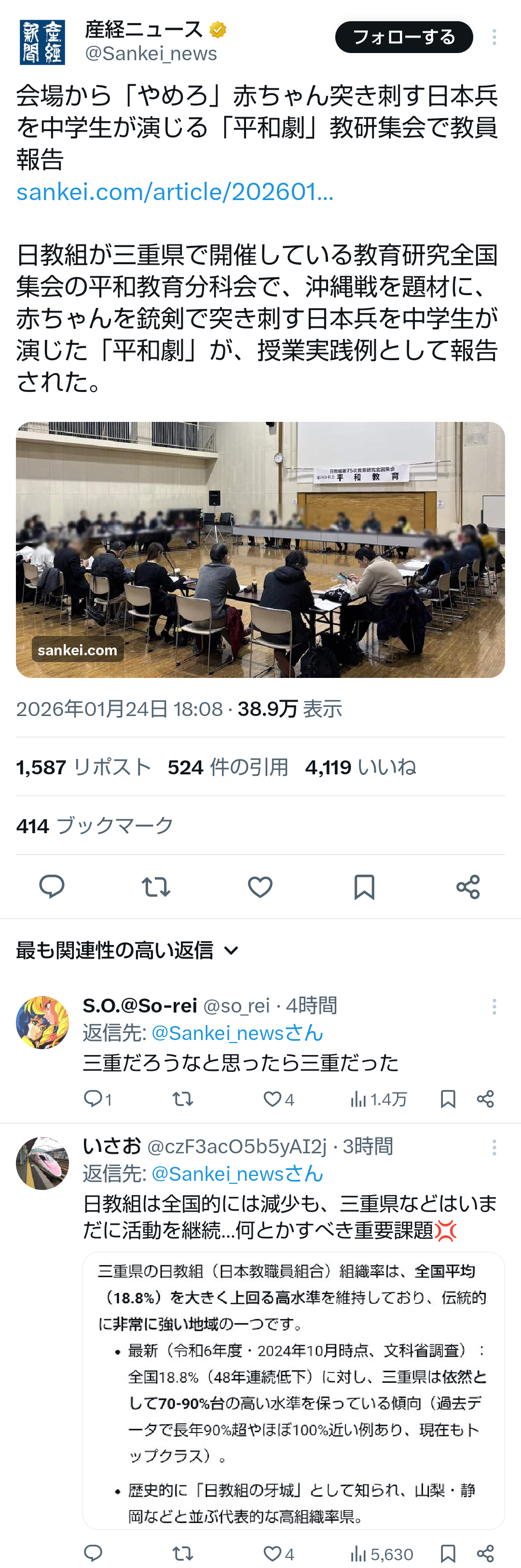 | … | 69無題Name名無し 26/01/22(木)12:32:56No.773267そうだねx1>日教組で兵庫で在日朝鮮人の参政権とか有機農業とかなかなかすごいなこの人(ソースはウィキ) |