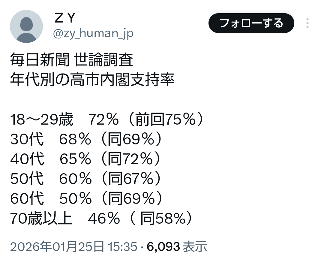 | … | 924無題Name名無し 26/01/25(日)18:19:42No.774223+ぶっちゃけ自民の評価が上がった訳でなく高市路線がウケてるだけなのを忘れたら |