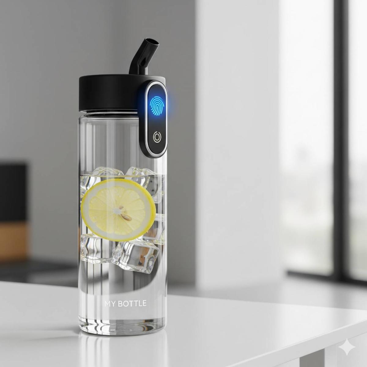 指紋認証で飲み口のロックを解除する水筒は、