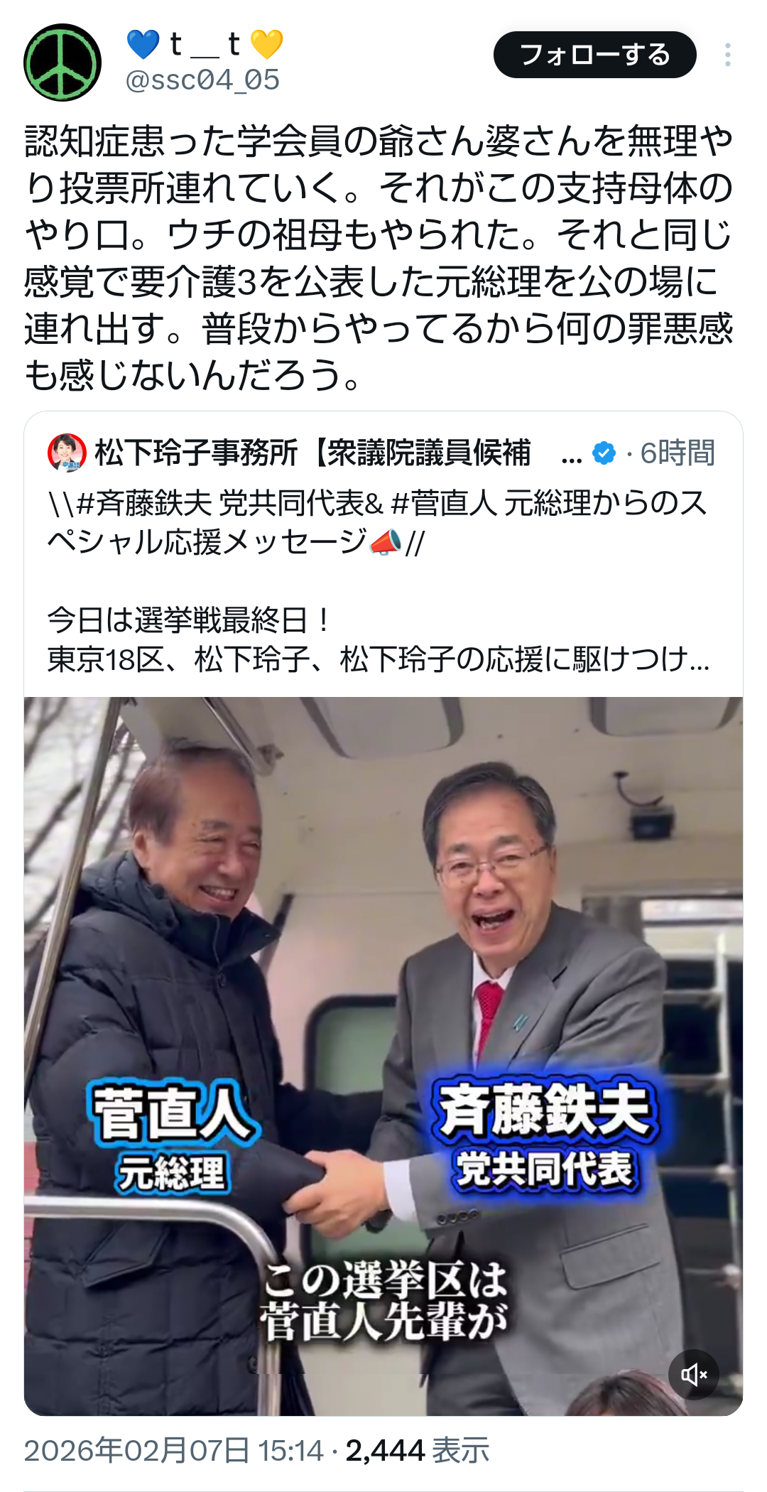 | … | 318無題Name名無し 26/02/08(日)18:08:34No.778455+うちの県は公明立憲表記は無効と取り決め出来てたけど |