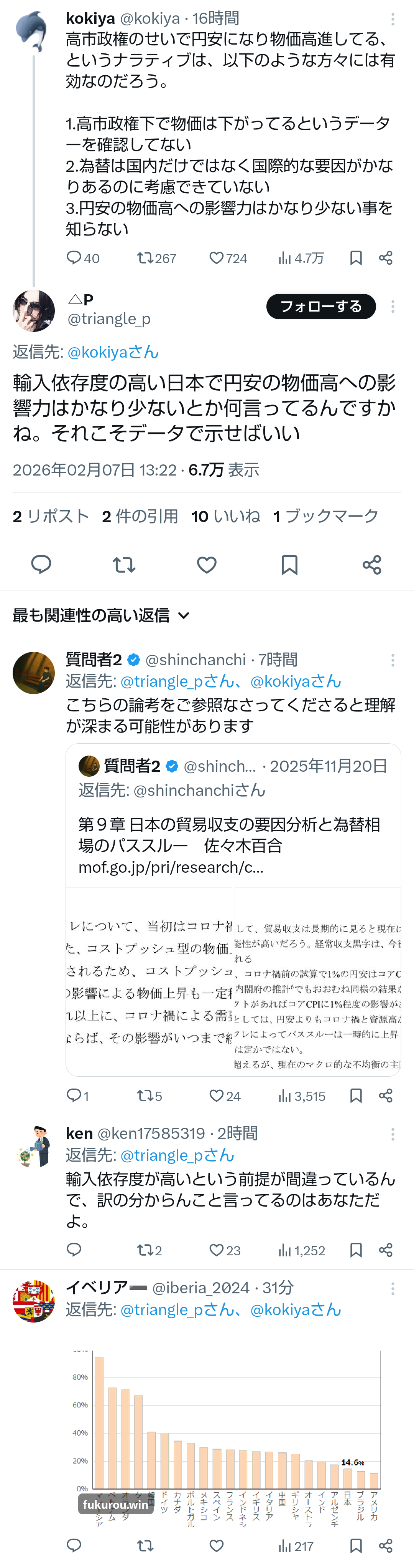 | … | 69無題Name名無し 26/02/07(土)22:15:40No.778173+ 1770470140846.png-(926925 B) >輸入依存度の高い日本で円安の物価高への影響力はかなり少ないとか何言ってるんですかね。それこそデータで示せばいい |