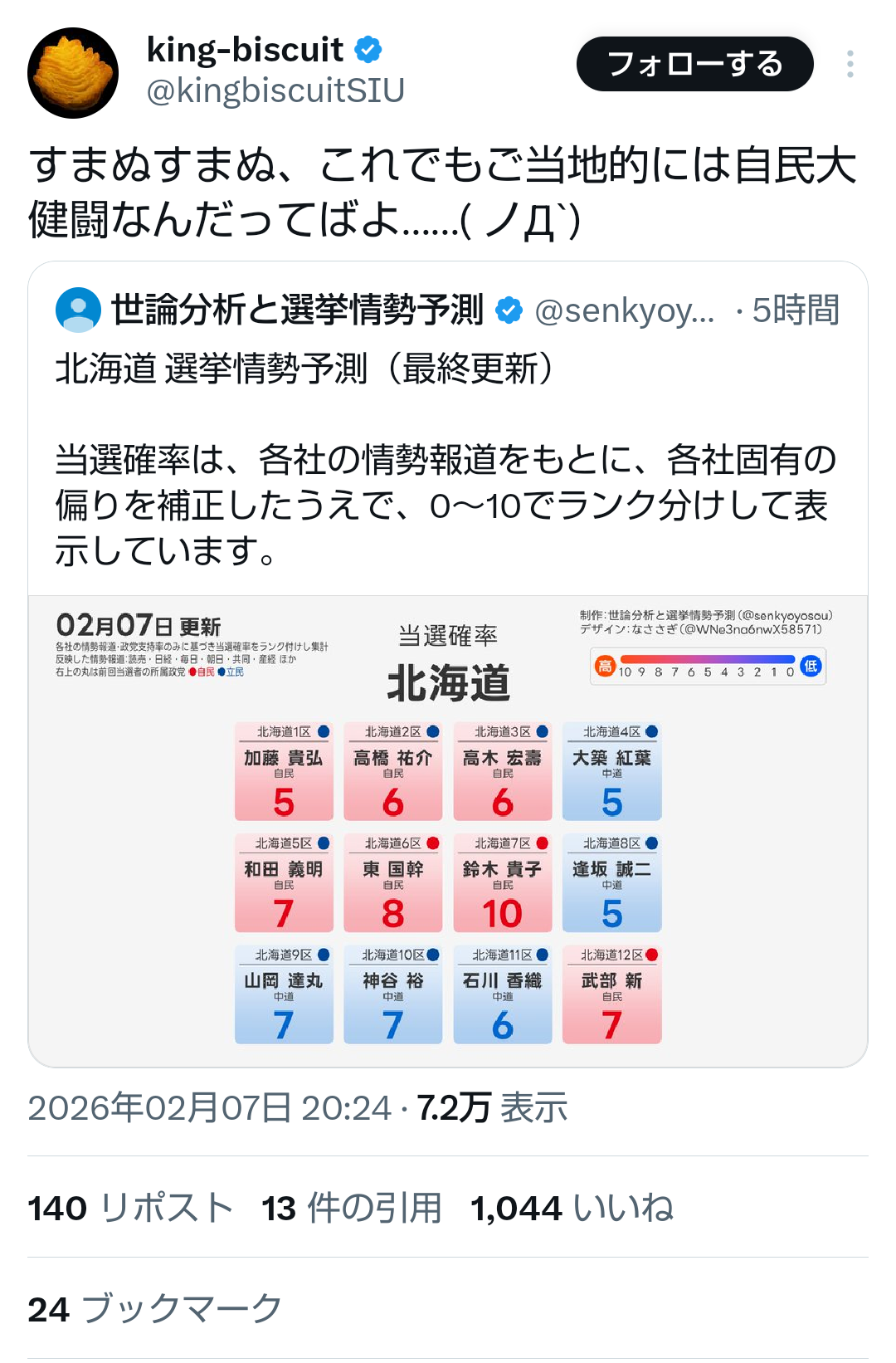 | … | 54無題Name名無し 26/02/07(土)20:50:03No.778145+>去年の衆議院選は結構当たったらしい |