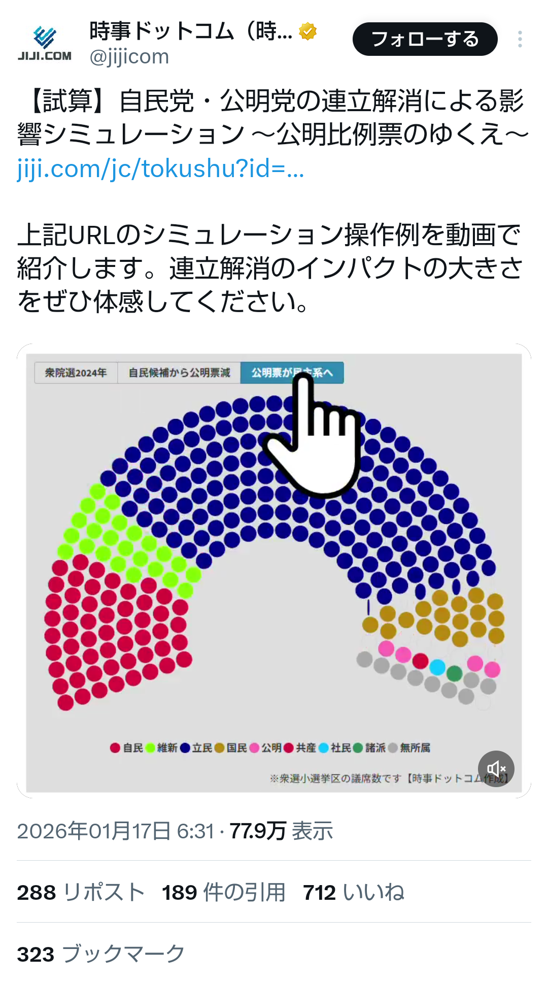 | … | 50無題Name名無し 26/02/07(土)20:14:03No.778141+>自民が大勝すればただの1議席になるからと割り切るしかないね次は無いし |