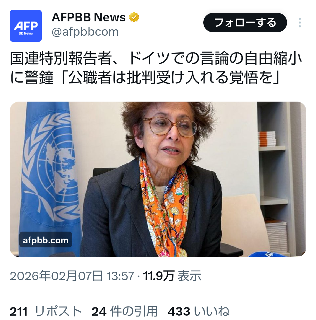 | … | 14無題Name名無し 26/02/07(土)17:51:52No.778098+ 1770454312733.jpg-(559651 B) https://news.yahoo.co.jp/articles/f5a89ac3a02aa9c5ccfa3ed19414dcecbd0ce2a8 |