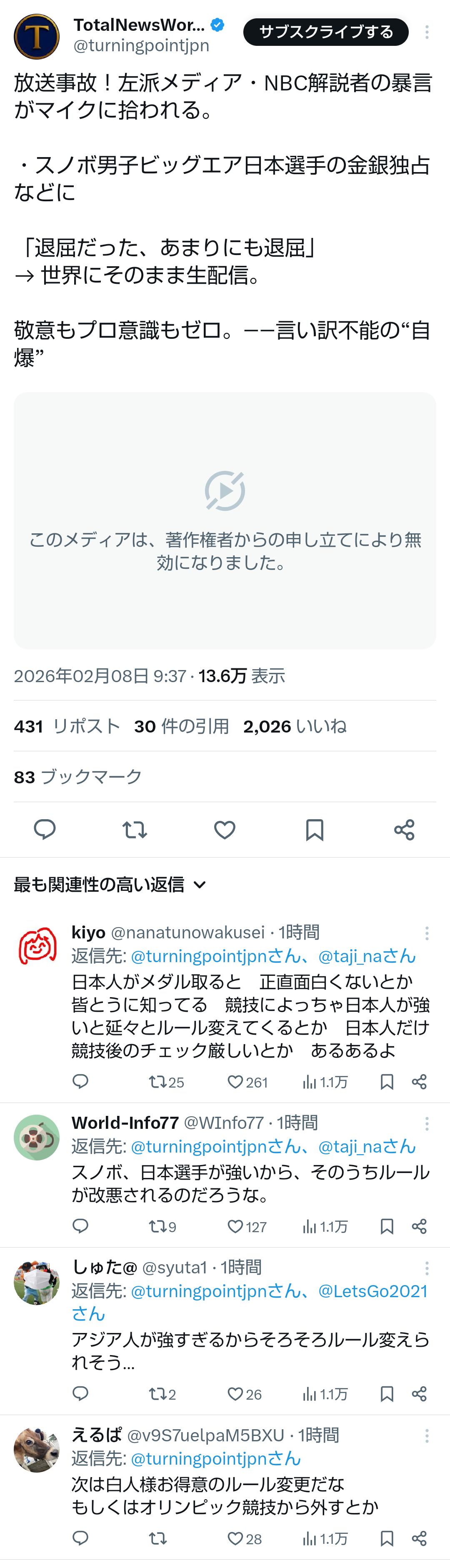 | … | 284無題Name名無し 26/02/08(日)16:12:34No.778414そうだねx1>凄いっていうかむしろ全国紙とかテレビ局ではやらないの?って思っちゃう |