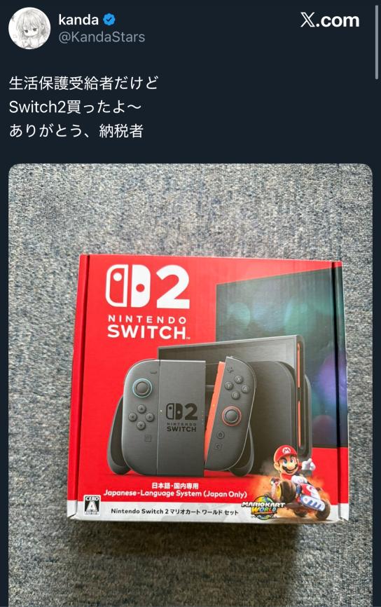 【悲報】生活保護費者(ナマポ民)、国民の税金でSwitch2を購入し炎上