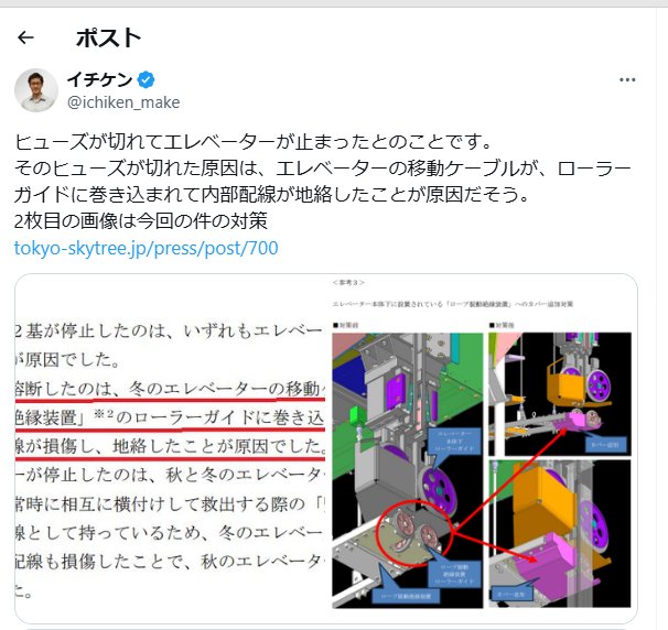 | … | 1無題Name名無し 26/02/26(木)12:06:47No.783589+問題点がエレベーターのヒューズの劣化だと判明 |