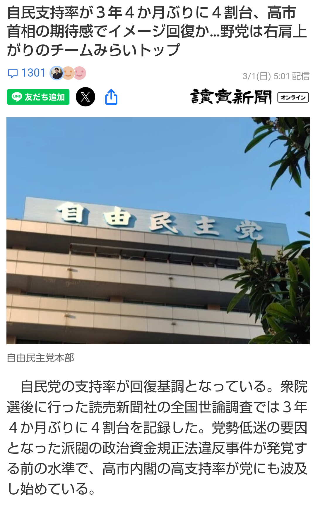 | … | 21無題Name名無し 26/03/01(日)13:11:08No.784172そうだねx2>自民はダメみたいに |