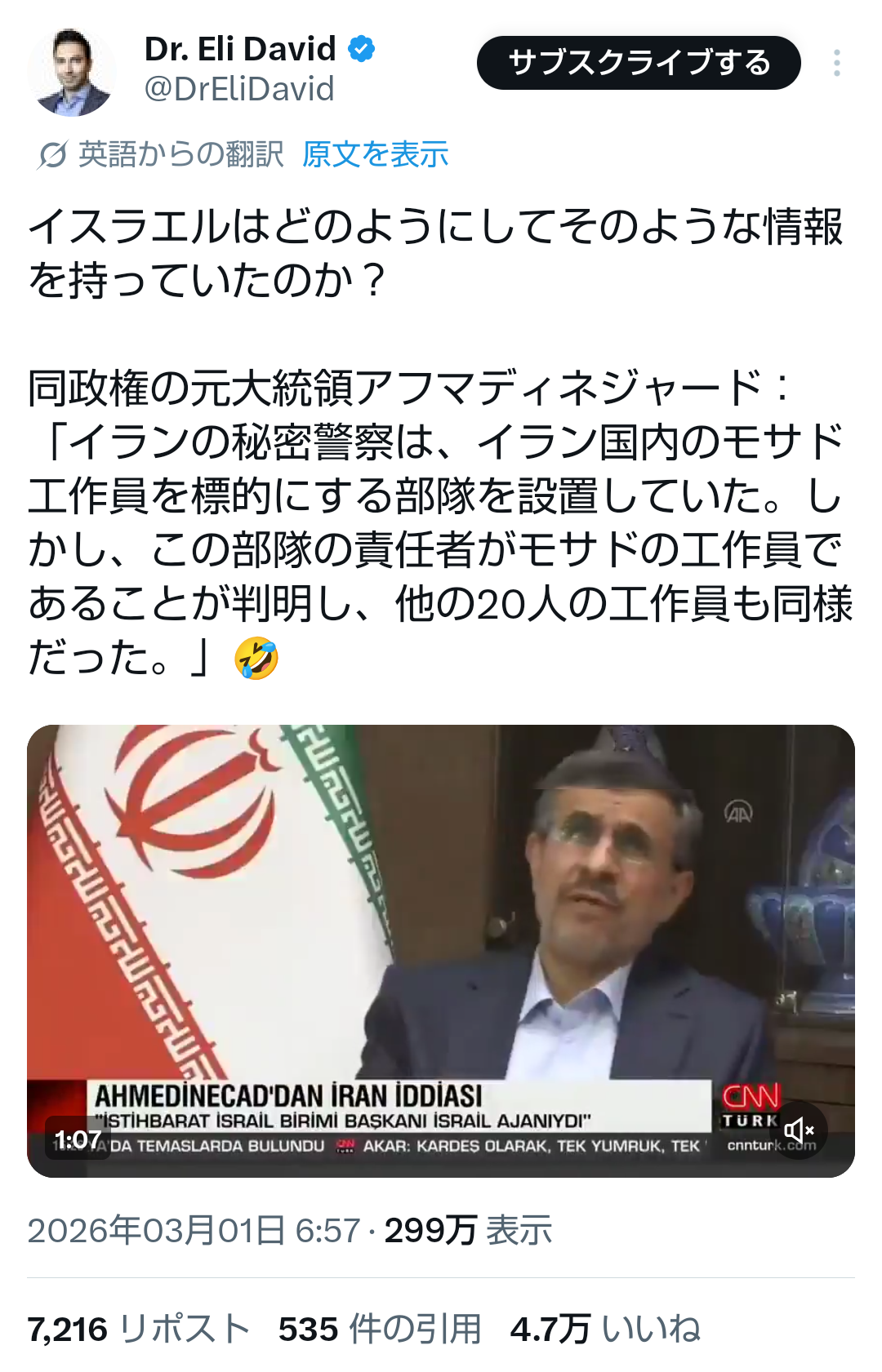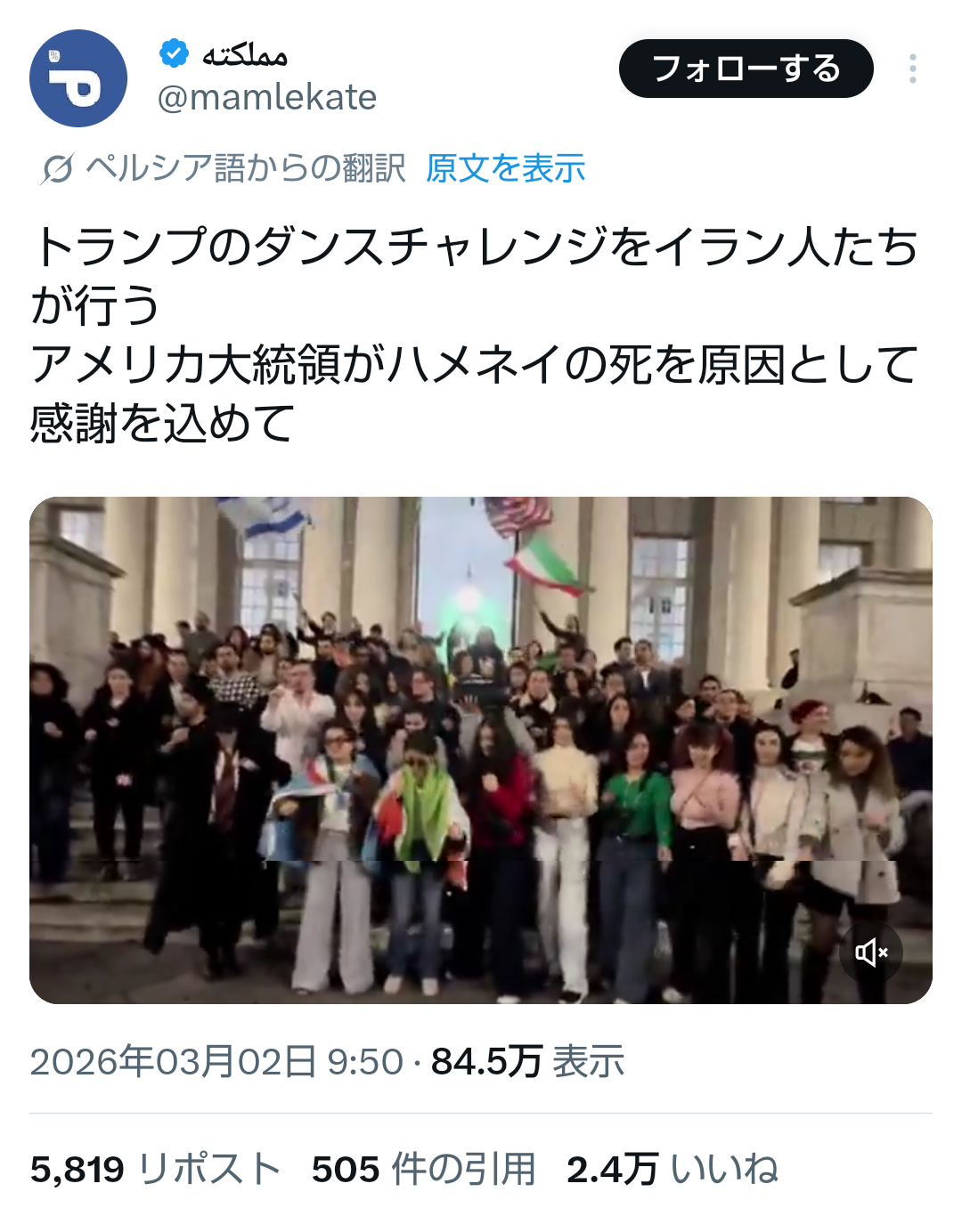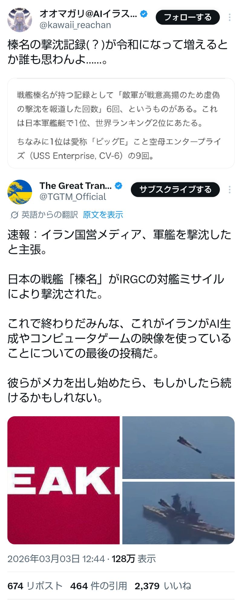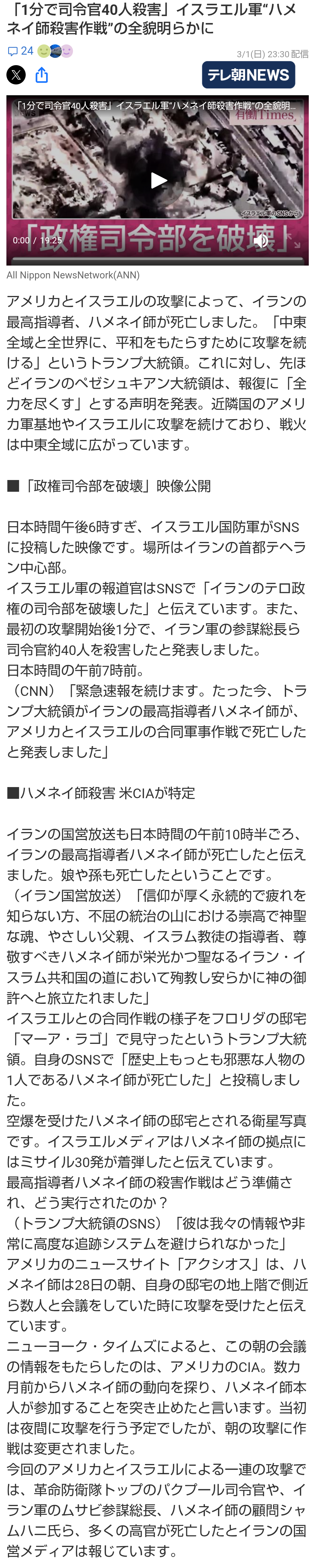 | … | 36無題Name名無し 26/03/01(日)13:43:10No.784187+>イランの国営放送も発信してたと思う |