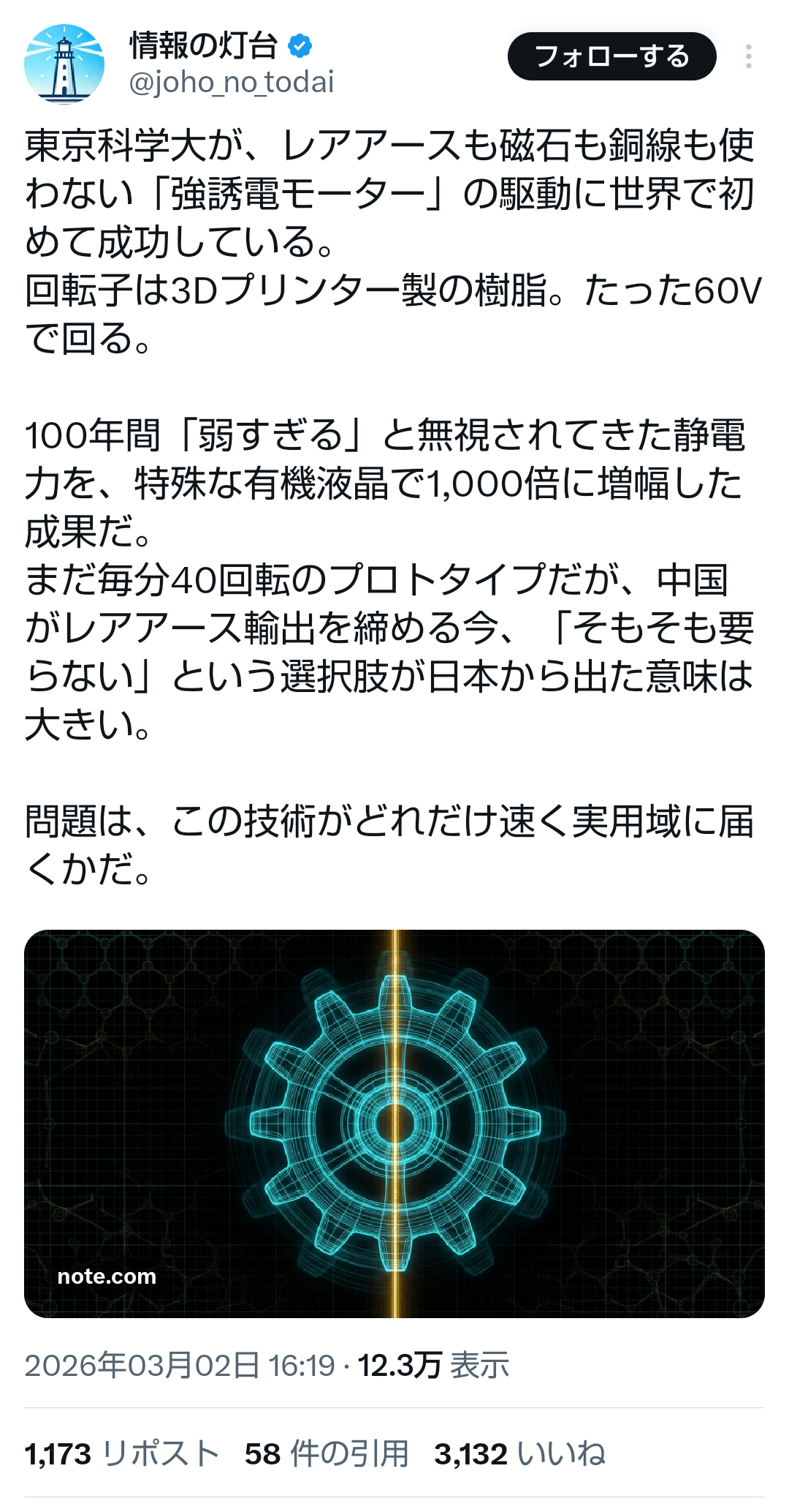 | … | 70無題Name名無し 26/03/01(日)14:47:53No.784228+ 1772344073394.jpg-(217417 B) https://x.com/i/status/2027886050173915605 |