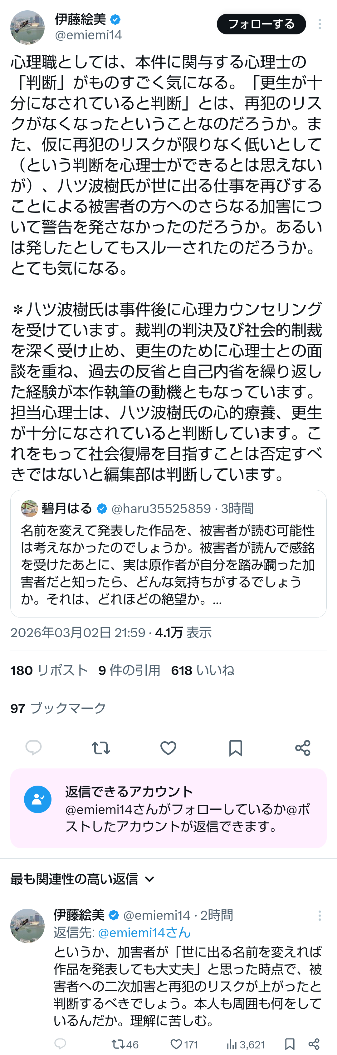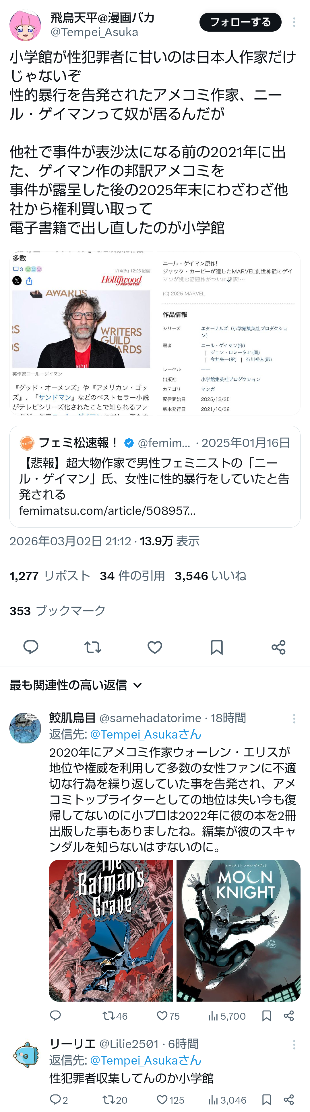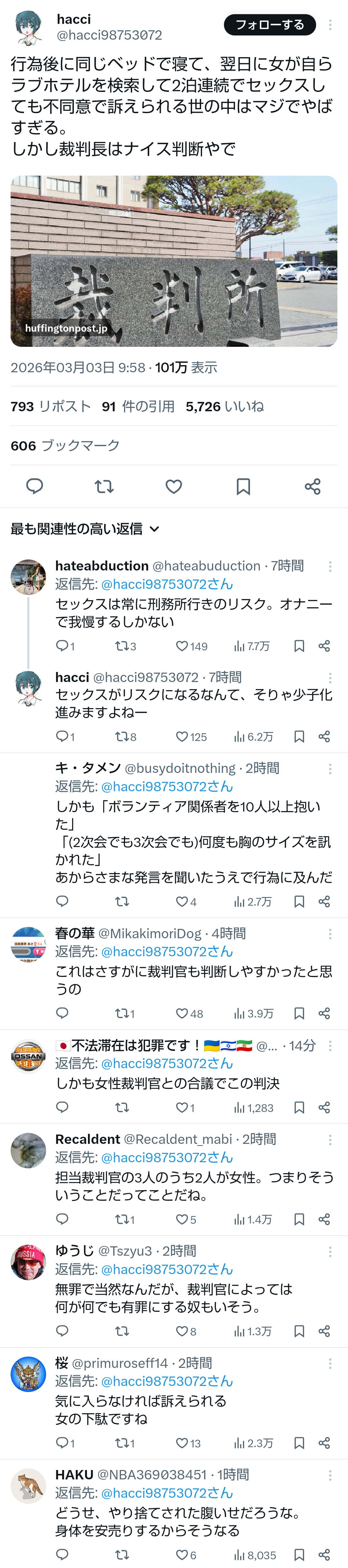 | … | 94無題Name名無し 26/03/01(日)16:12:54No.784253そうだねx2まあ過去にスキャンダル追及やあげ足取り・悪口ばかりで |