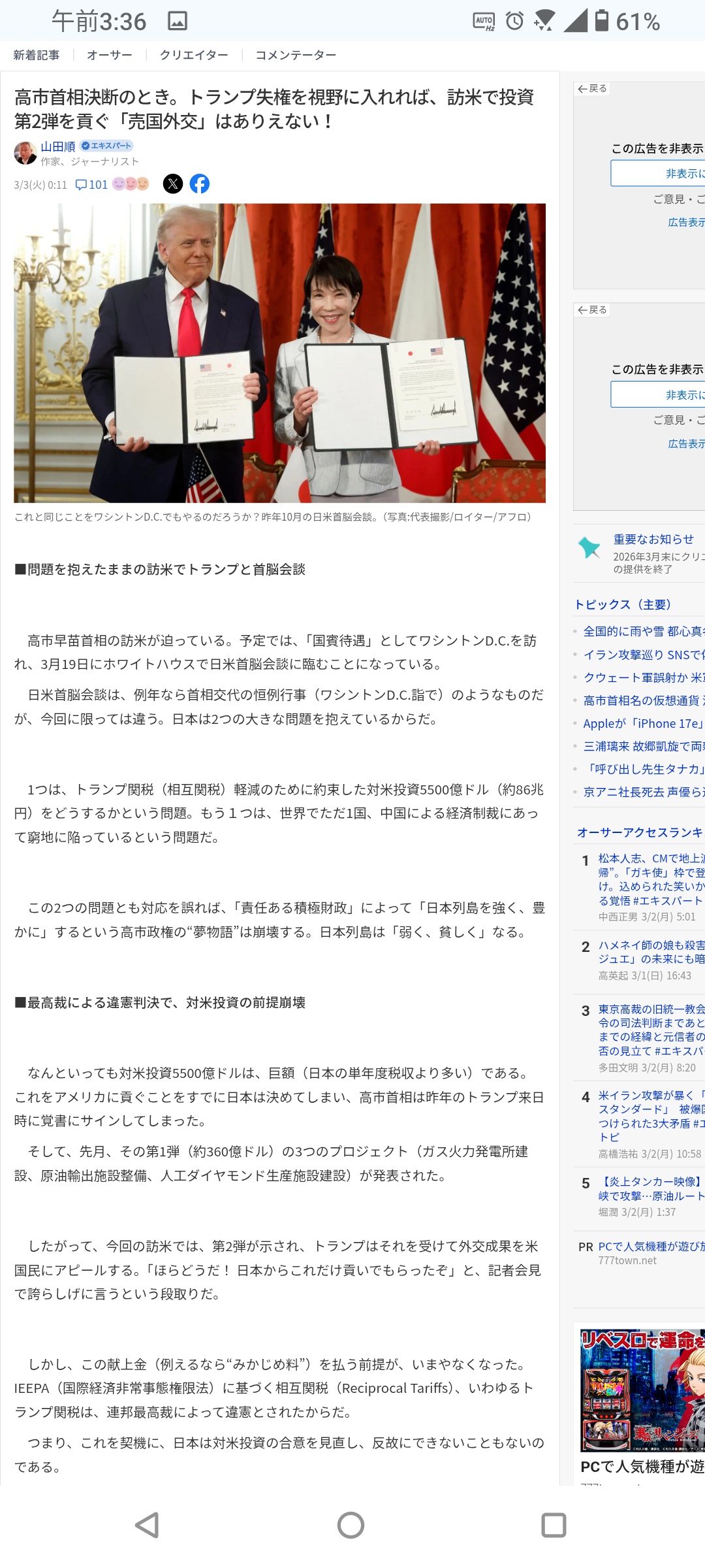 | … | 91無題Name名無し 26/03/01(日)16:05:52No.784250そうだねx2 1772348752823.jpg-(622960 B) https://www.sankei.com/article/20260301-RDFIPDYIOVN67CN37C3URR6T2Y/?outputType=theme_weekly-fuji |