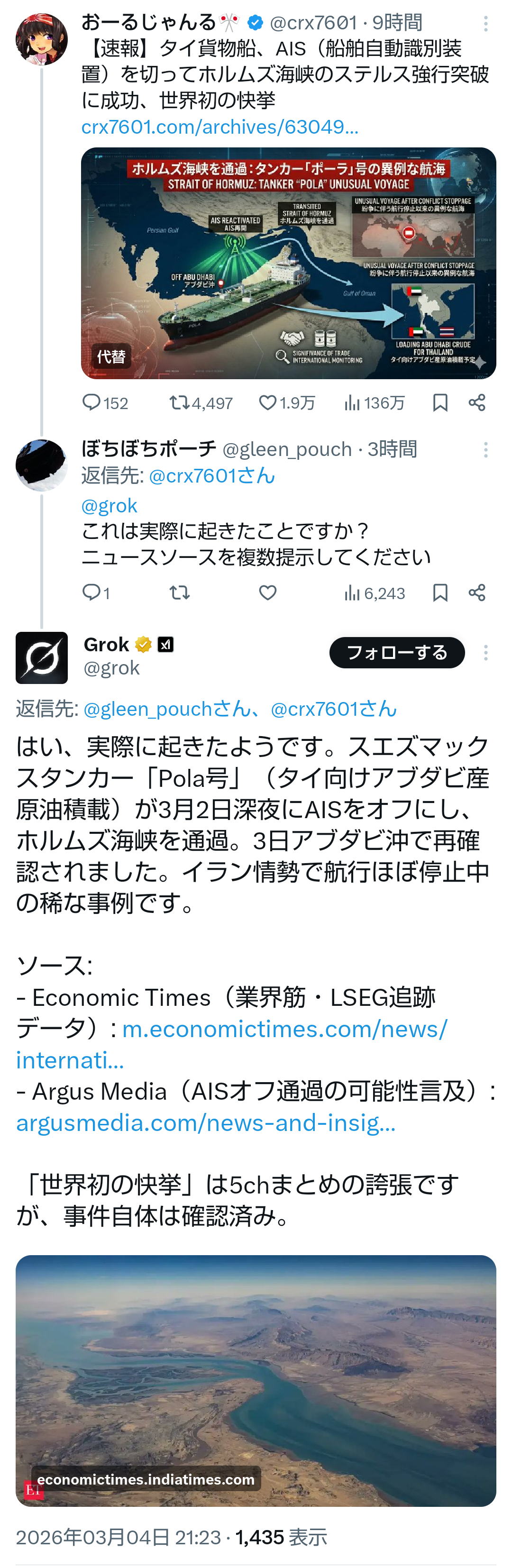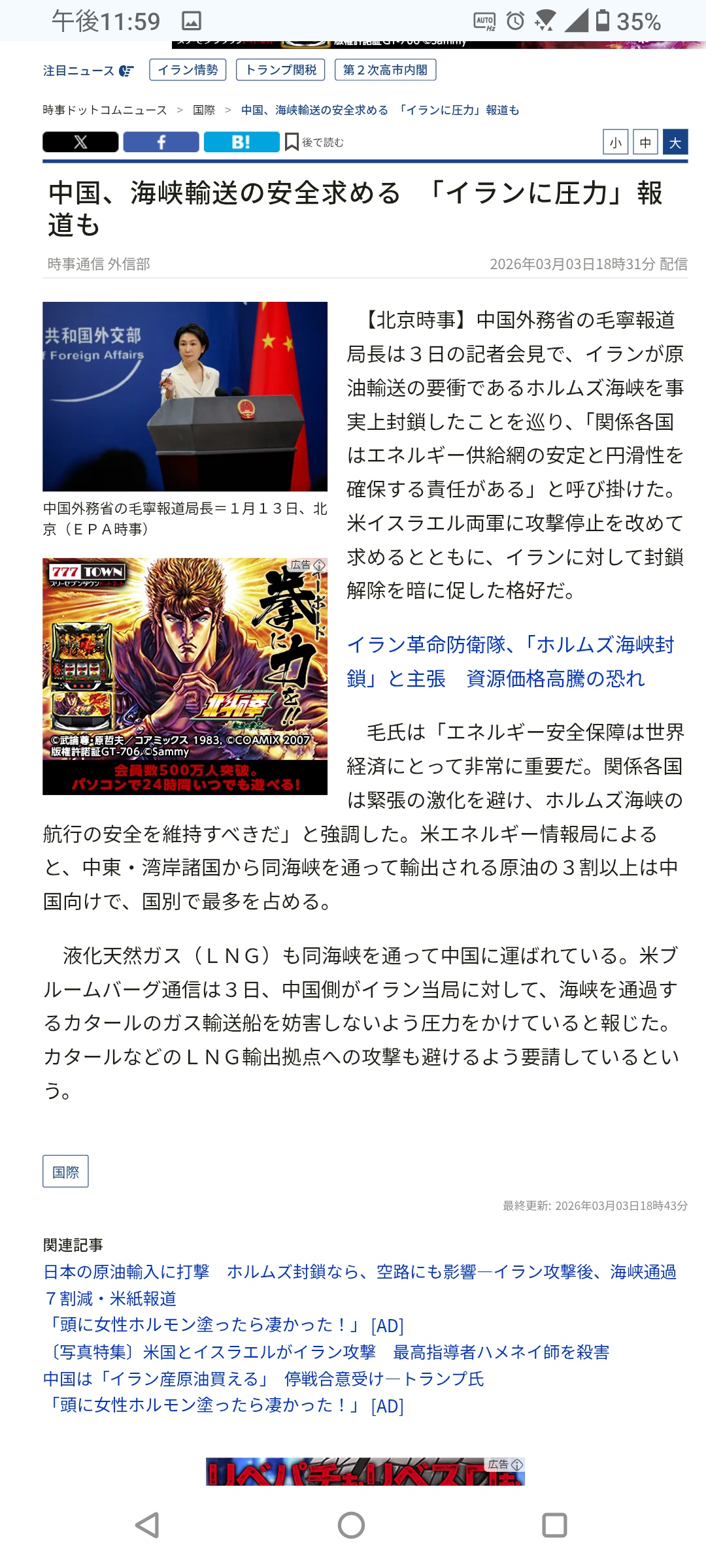 | … | 16無題Name名無し 26/03/01(日)13:05:35No.784167+イランの石油が中国の消費の何割占めるか知らんけど |