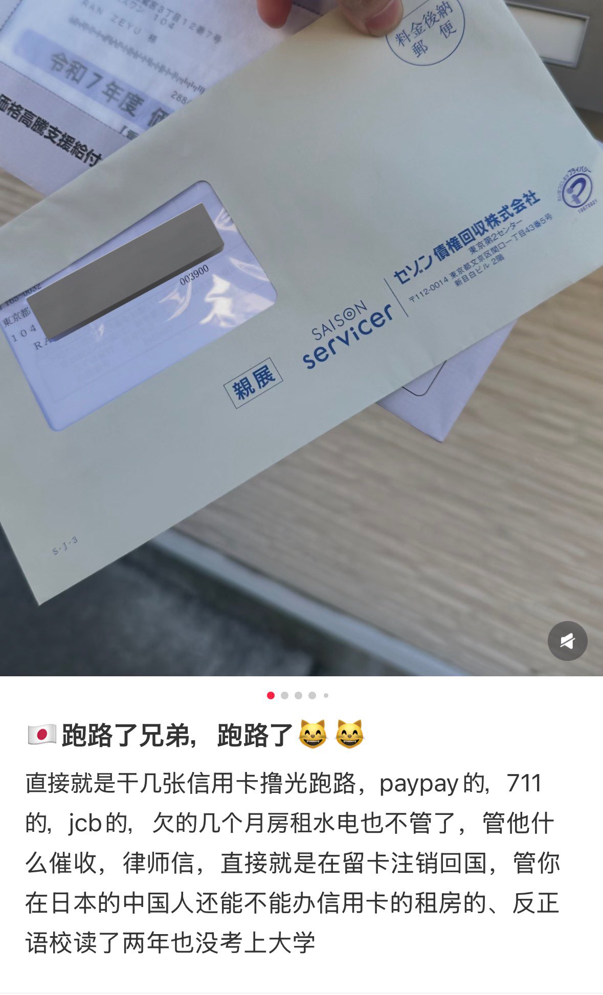 「俺はPayPayカード、セブンカード、JCBカードを使い切って、返済せずに中国へ帰国したぞ!