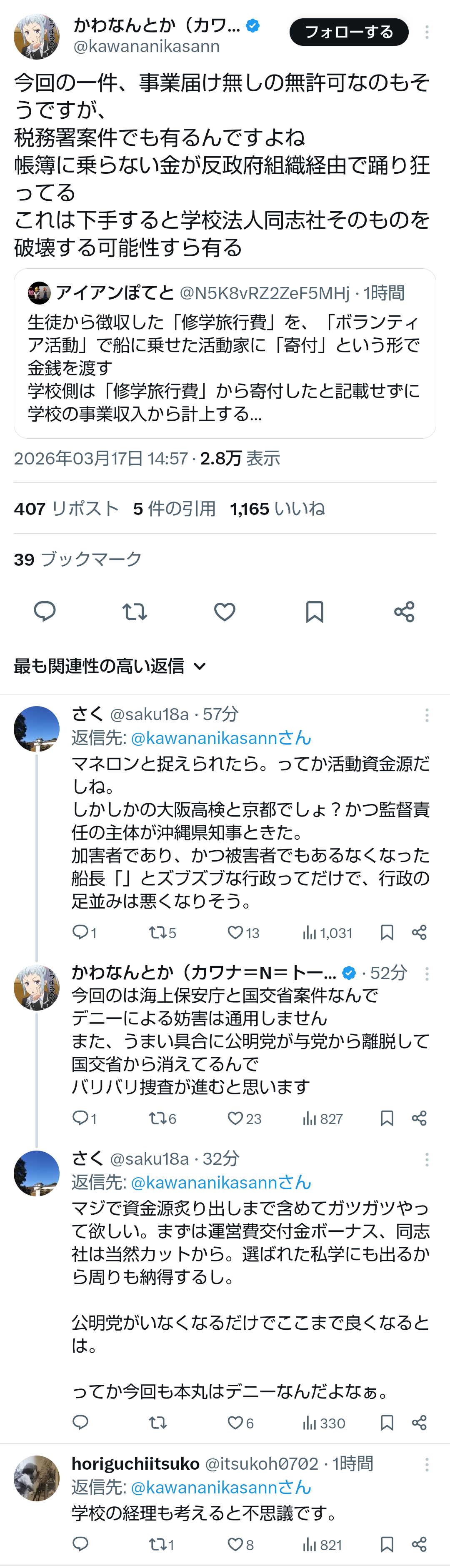 | … | 55無題Name名無し 26/03/17(火)16:45:48No.787642そうだねx4案の定活動家のシノギだのマネロンだの言われてるね |