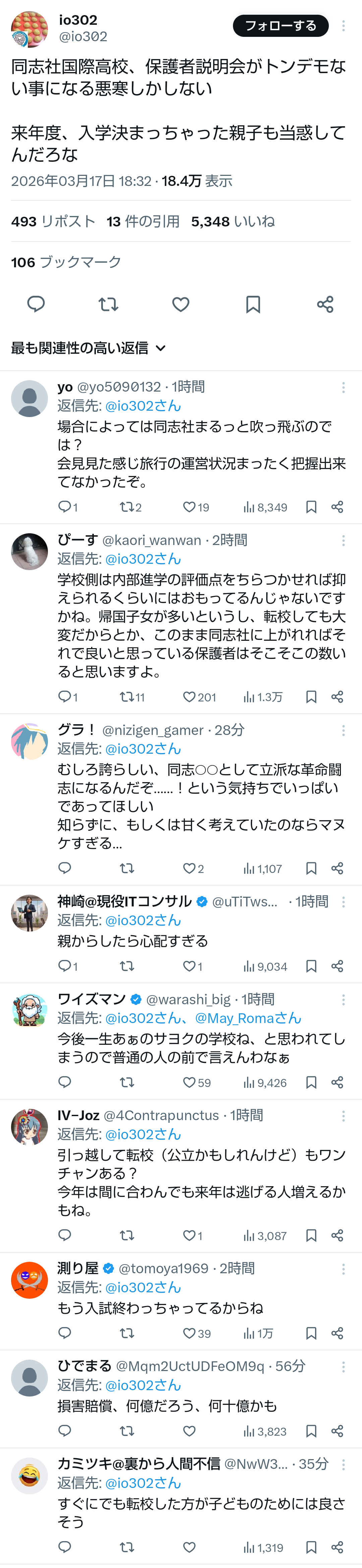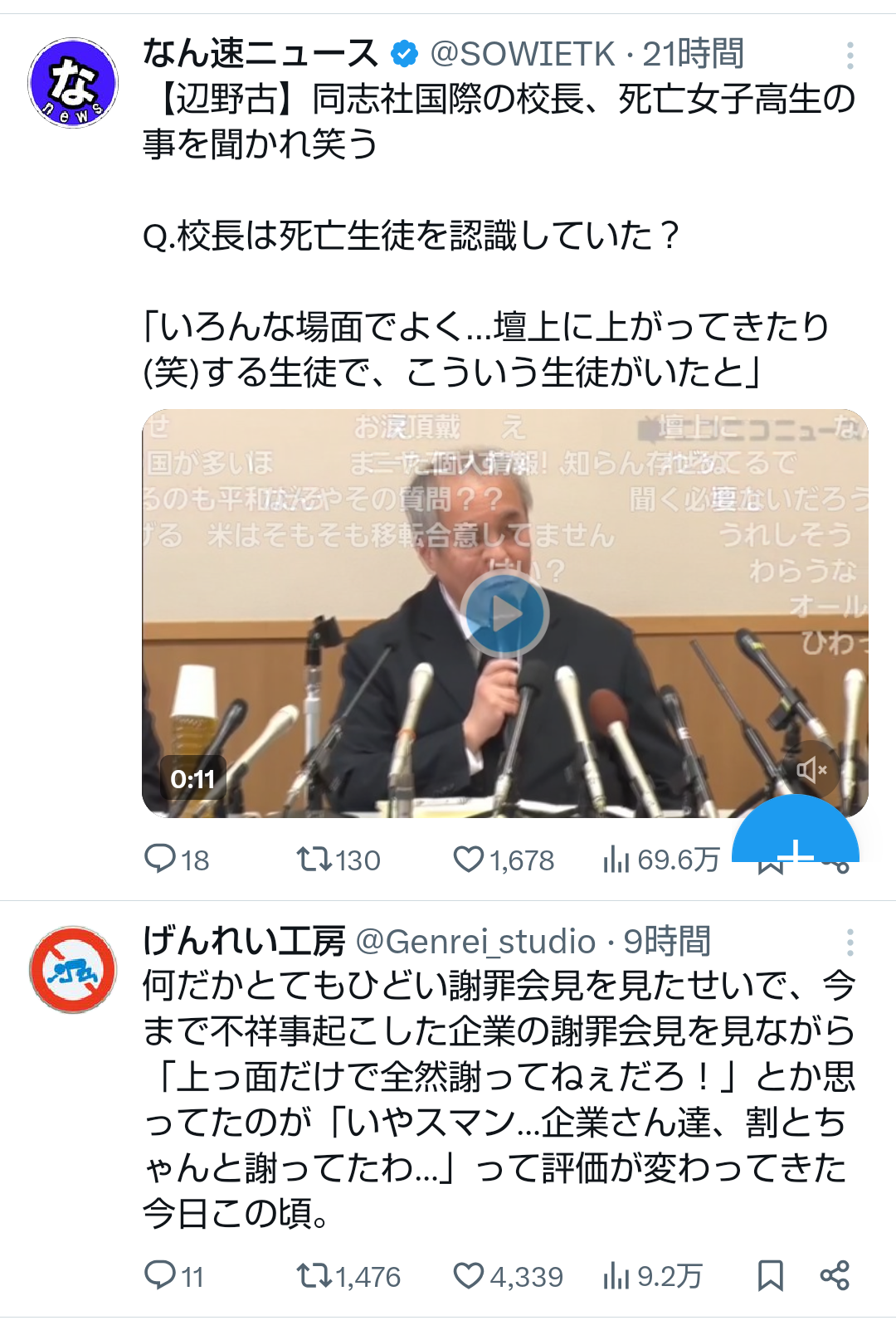 | … | 4無題Name名無し 26/03/17(火)13:54:35No.787575そうだねx3 1773723275185.png-(1055992 B) >同志社国際高校が会見 |