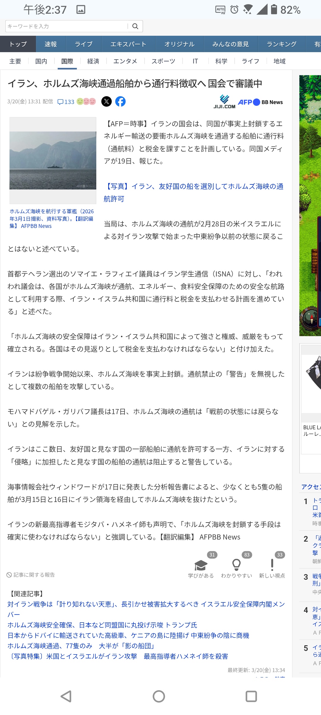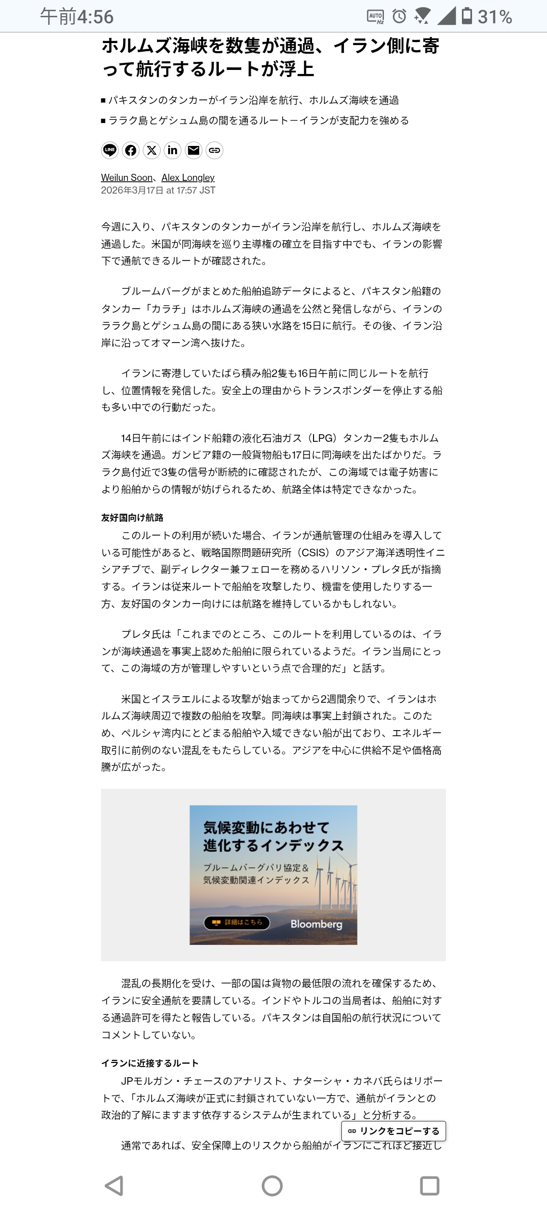 | … | 713無題Name名無し 26/03/20(金)19:22:15No.788424+>「Japanもホルムズ海峡に掃海艇出せ!」とかそんな事ふっかけられ無かったし |
