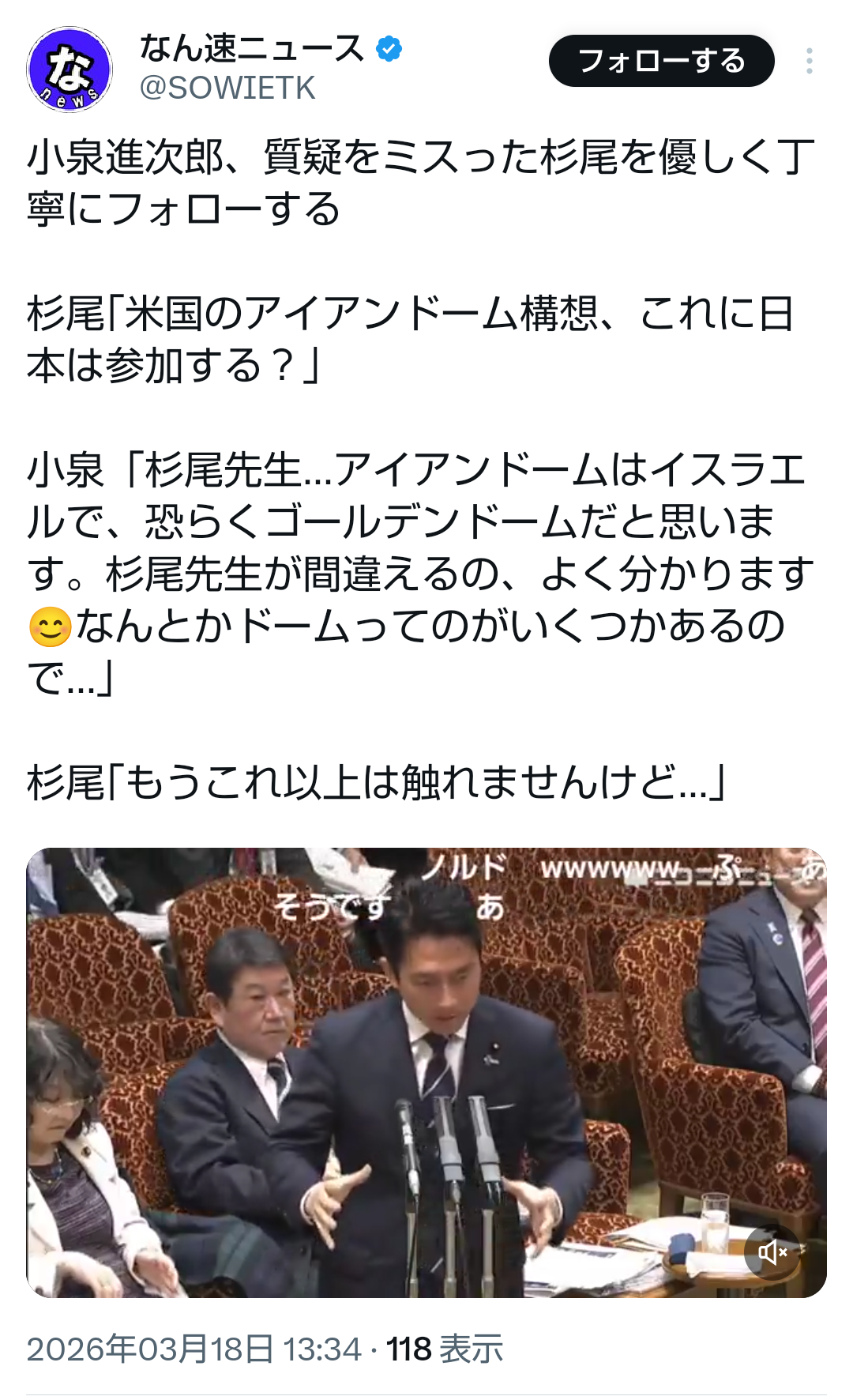 | … | 34無題Name名無し 26/03/17(火)15:39:29No.787620そうだねx3 1773729569504.png-(953174 B) >小泉防衛相 |