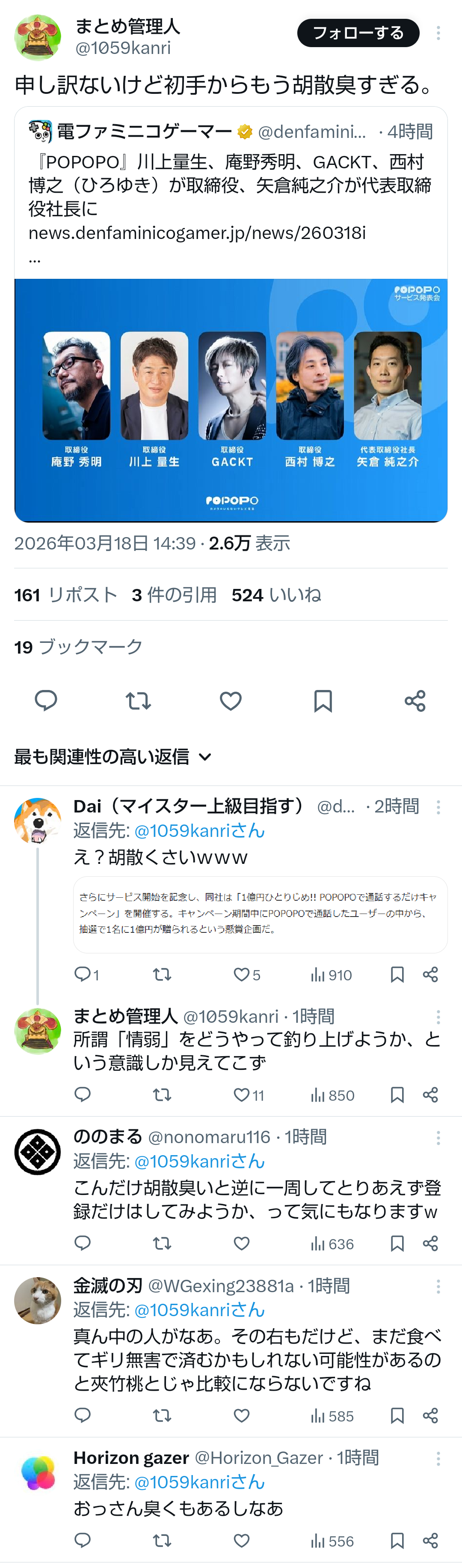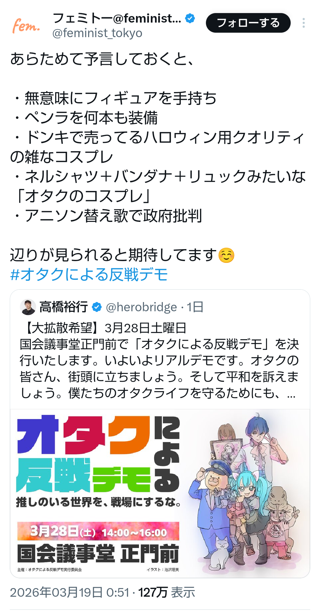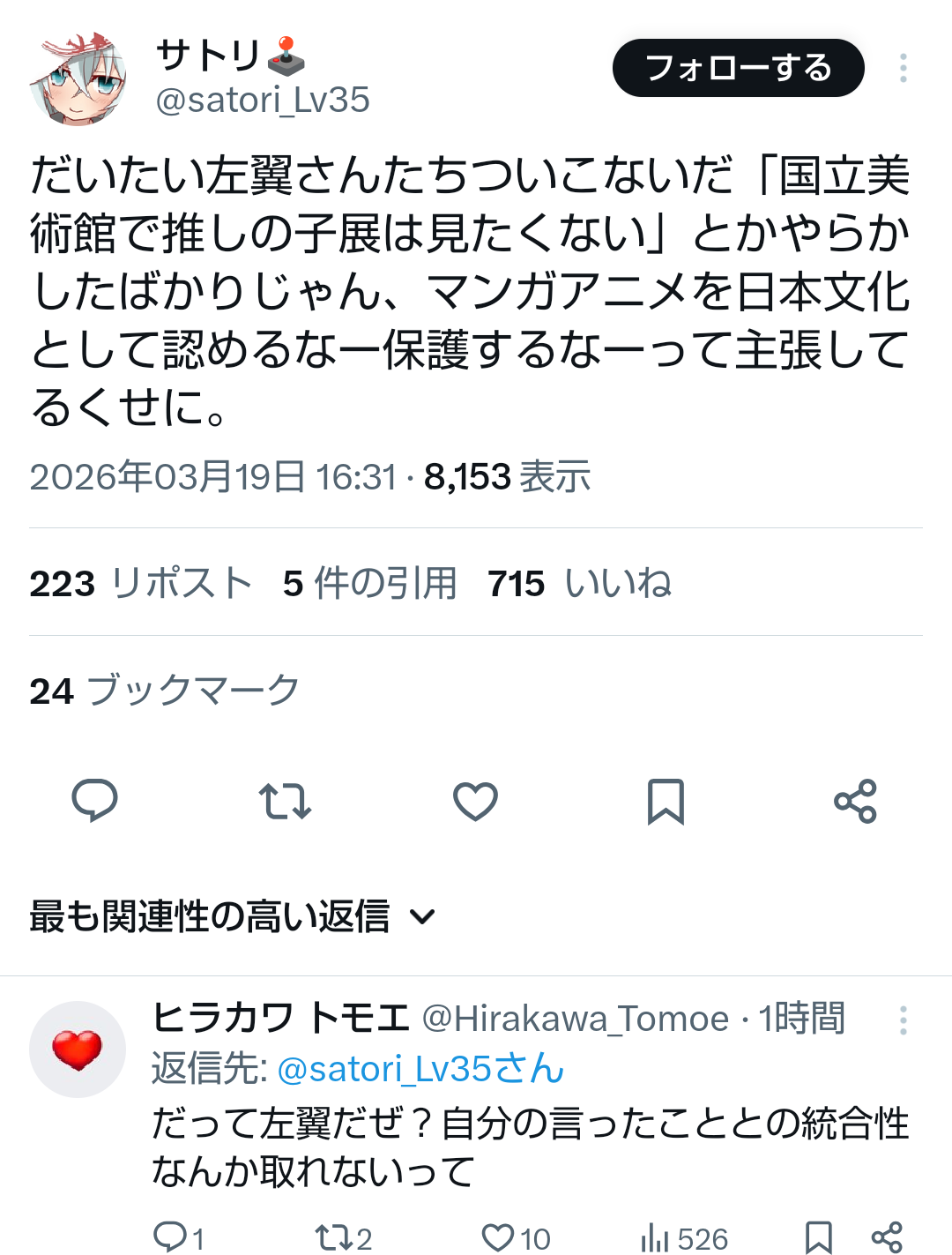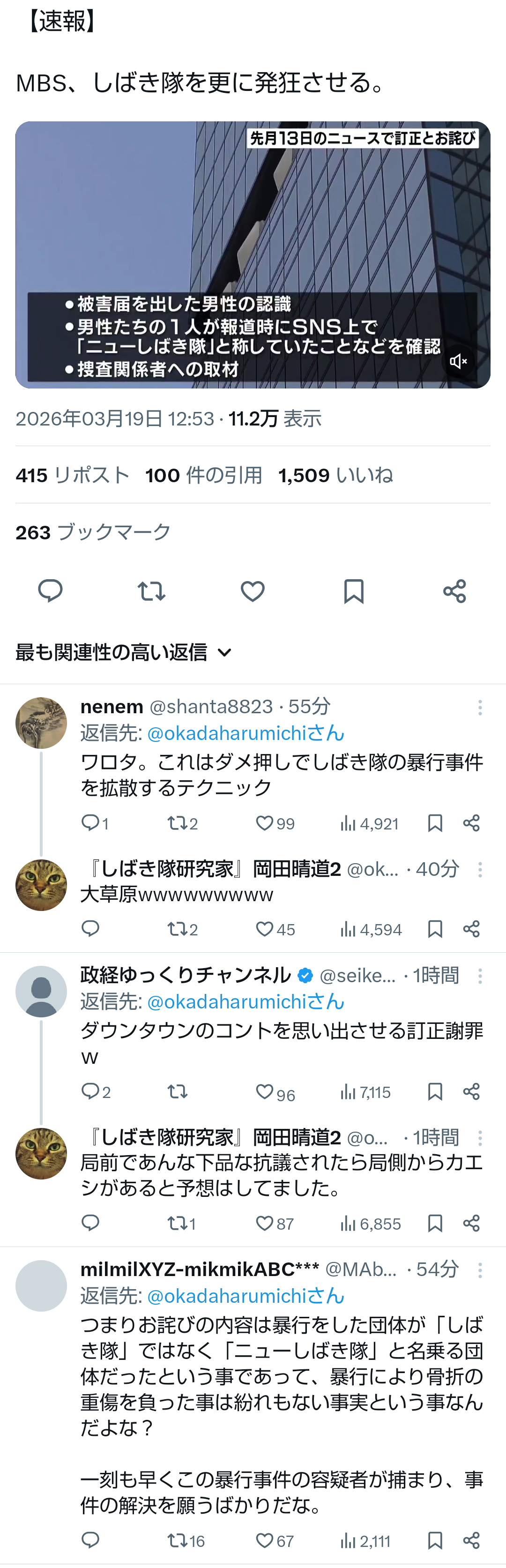 | … | 707無題Name名無し 26/03/20(金)18:35:52No.788418+>当のNNNアカウントは当該のポストを削除してしまってるし |