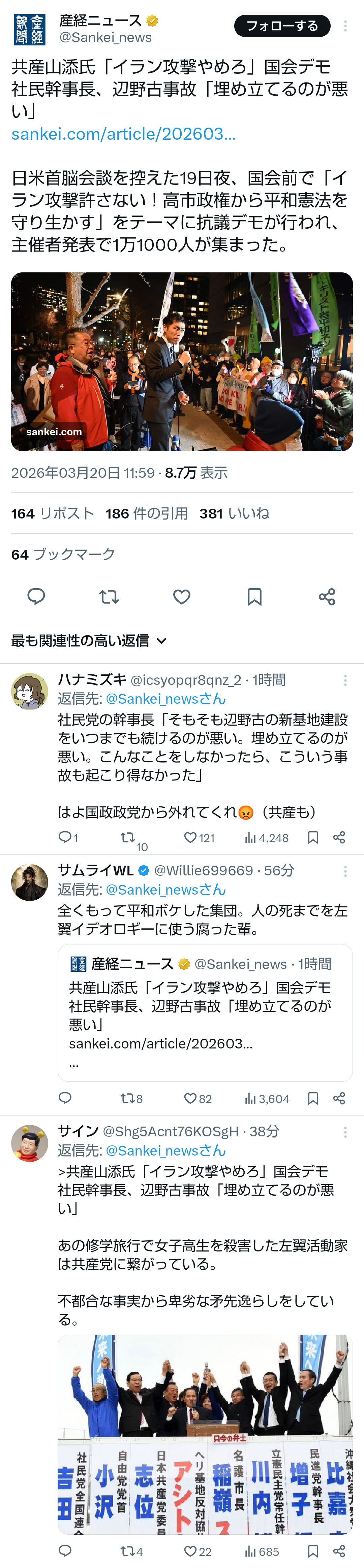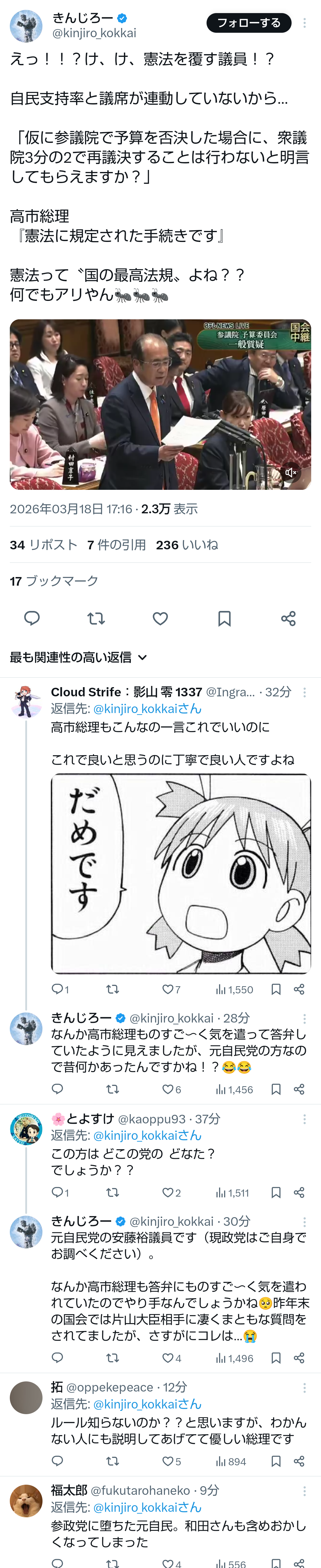| … | 36無題Name名無し 26/03/17(火)15:42:57No.787623そうだねx6 1773729777344.png-(1161242 B) >山添氏 |