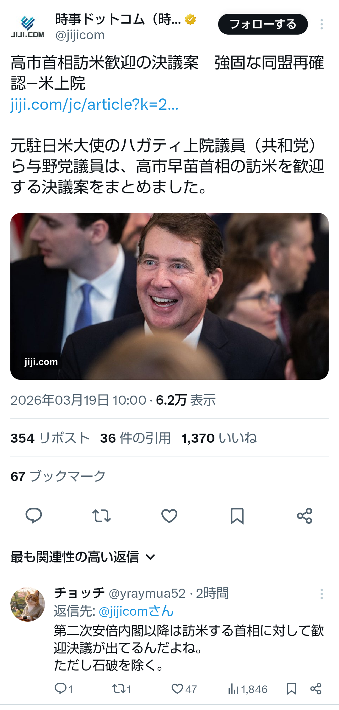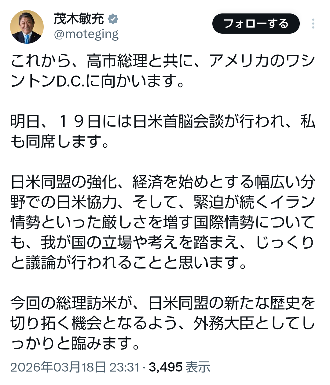 | … | 699無題Name名無し 26/03/20(金)17:47:12No.788410+トランプはマスコミ嫌いなので茂木も説明が楽だろう |