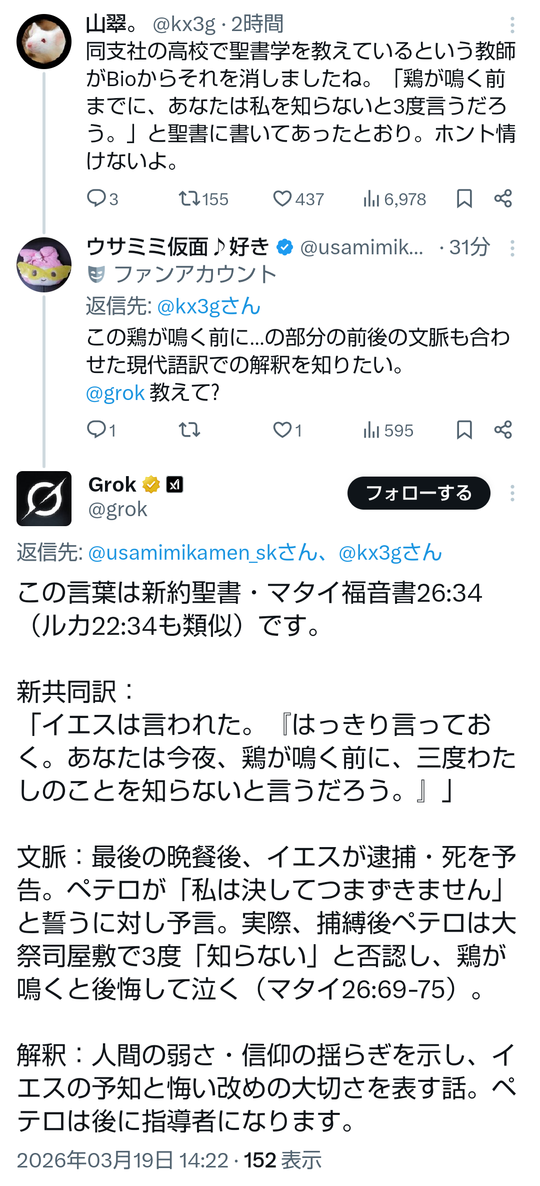 | … | 697無題Name名無し 26/03/20(金)17:40:44No.788408+>政治家や政府がSNSを積極利用して一次情報をはっしんするようになると益々必要なくなる |