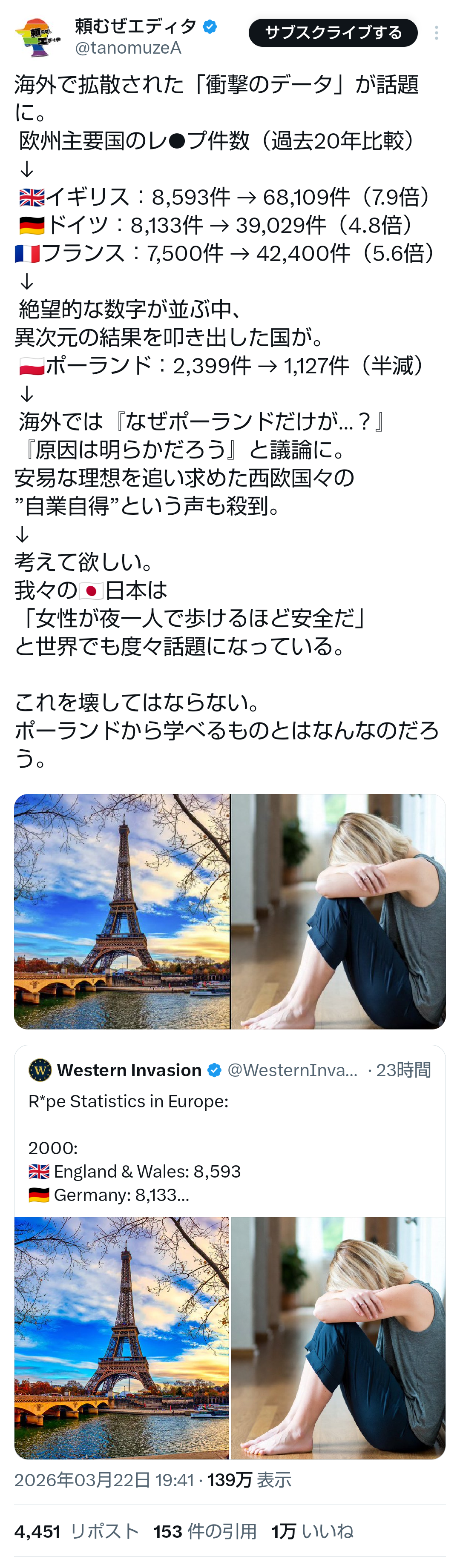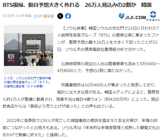 | … | 54無題Name名無し 26/03/23(月)15:48:30No.788849そうだねx3 1774248510297.png-(131440 B) 26万人集まった ← あくまでも警察予想でした(日本のメディアは訂正しましょう) |