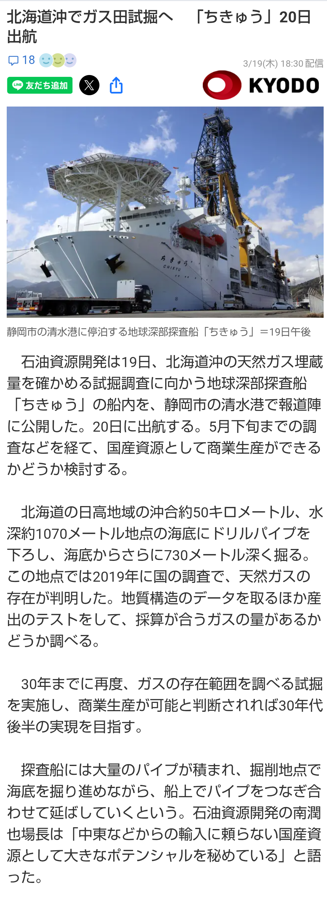 | … | 34無題Name名無し 26/03/23(月)13:15:34No.788824そうだねx3 1774239334743.png-(1309964 B) >北海道沖でガス田試掘へ 「ちきゅう」20日出航 |