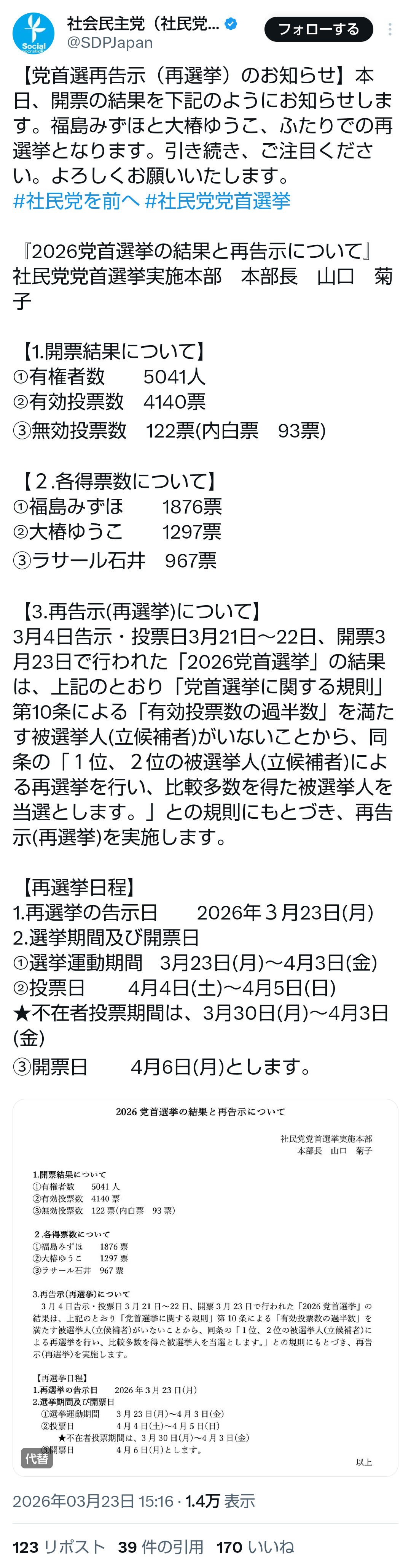 | … | 71無題Name名無し 26/03/23(月)17:44:28No.788869+>>3 ラサール石井 967票 (23.4%) |