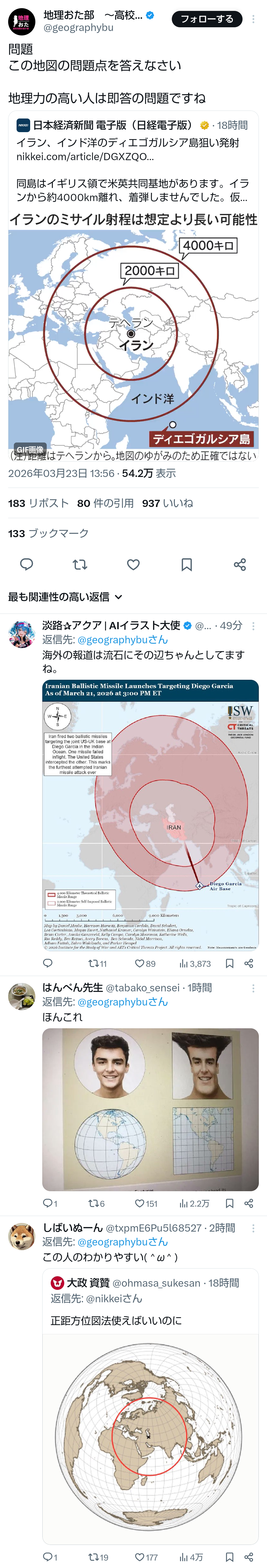 | … | 81無題Name名無し 26/03/23(月)18:38:08No.788881そうだねx5>正距方位図法使えばいいのに |