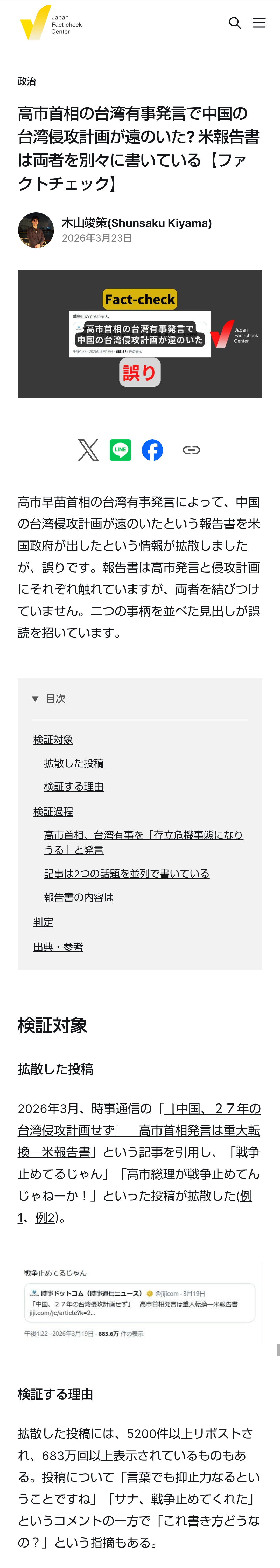 | … | 80無題Name名無し 26/03/23(月)18:33:10No.788880+ 1774258390339.png-(967123 B) >高市首相の台湾有事発言で中国の台湾侵攻計画が遠のいた? 米報告書は両者を別々に書いている【ファクトチェック】 |